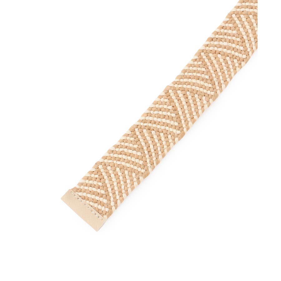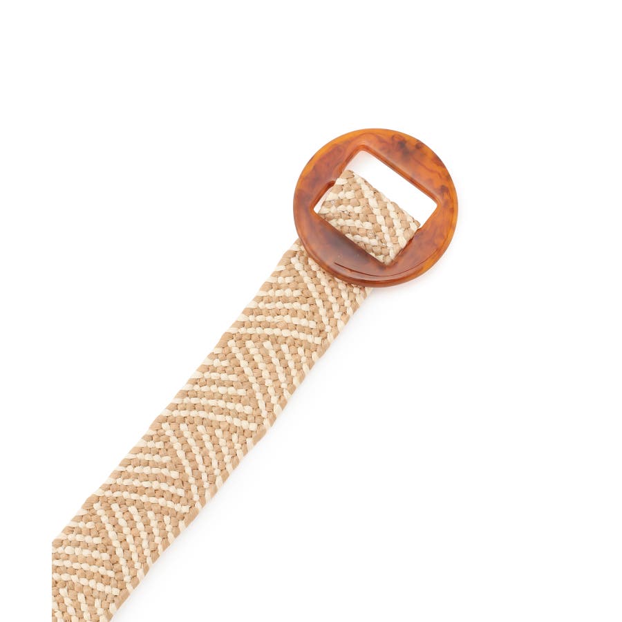 【デザイン・シルエット】 ・ストレッチ素材を使った編み込みデザインのベルト。 ・ラウンド型のアクリルバックルがレトロシック。 【カラー】 ・カラーによって柄が異なります。 ベージュ(27):無地 ベージュ系(28):ミックスカラー ※撮影時の光、お使いのモニター環境によって色の見え方が違う場合がございます。