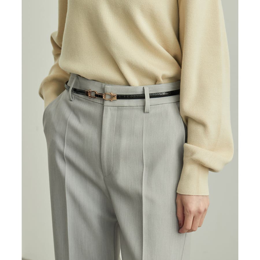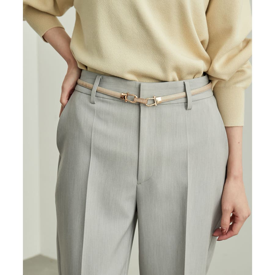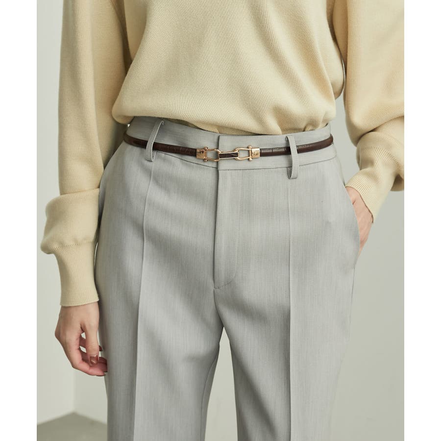 【デザイン・シルエット】 ・型押しデザインのレザー調素材を使ったベルト。 ・取り入れやすい、やや細身のライン。 ・留め具のビットがデザインアクセント。 【カラー】 ・ブラック、ブラウン、ライトベージュの合わせやすい3色展開。 【スタイリングポイント】 ・ロングカーディガンやビッグシャツのウエストマークに活躍。 ・きちんと感のあるシャツ?パンツコーデの引き締め役にも。 ※撮影時の光、お使いのモニター環境によって色の見え方が違う場合がございます。