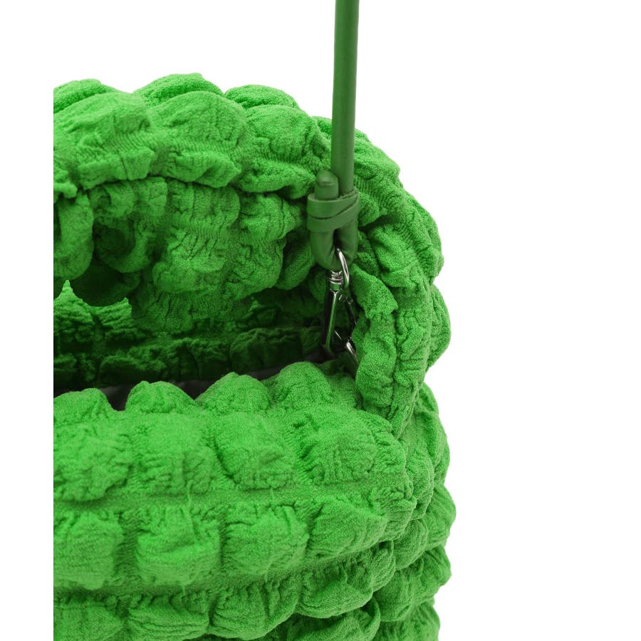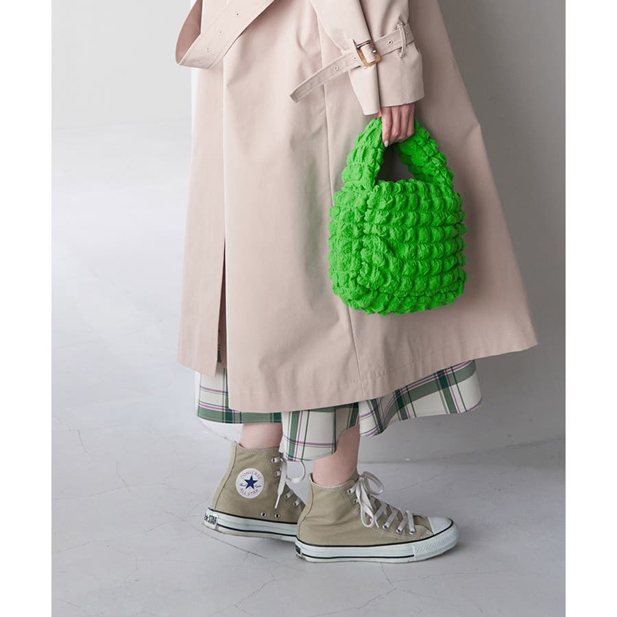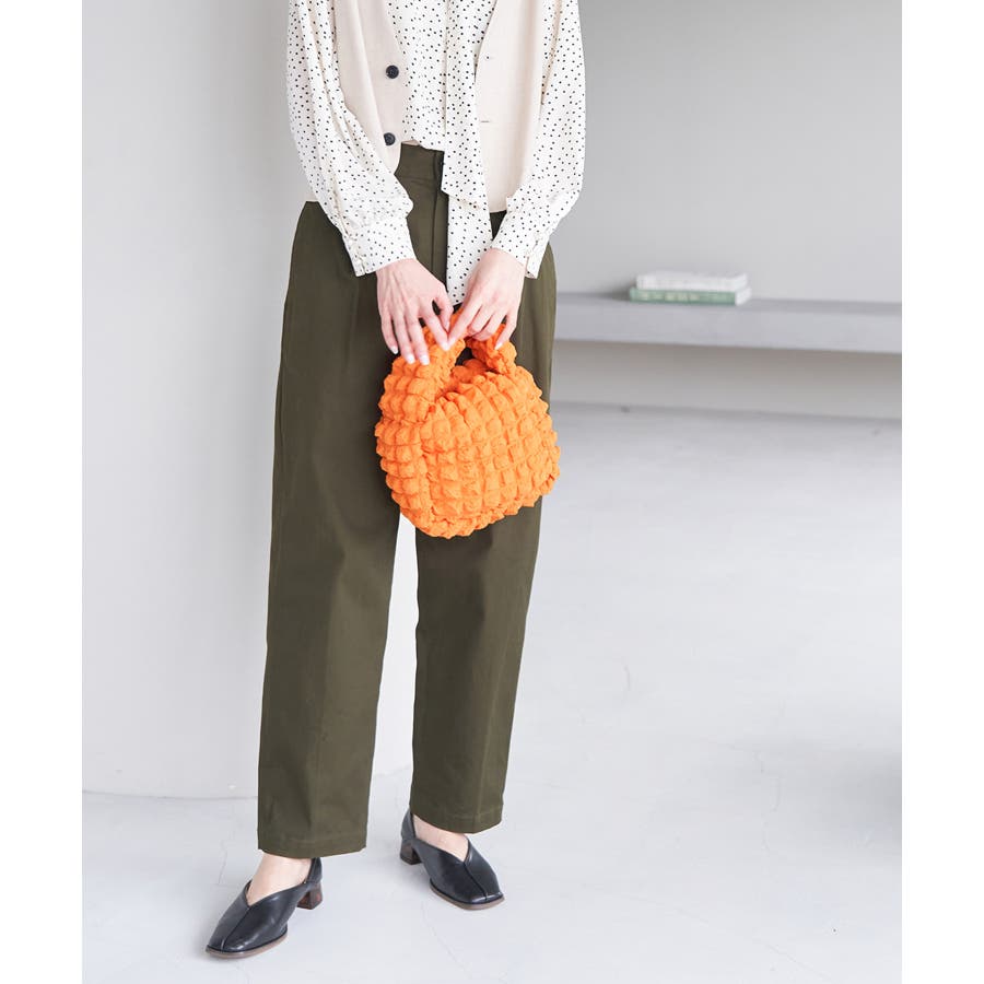 【素材感】 ・ポコポコとした凹凸感のあるジャカード生地を使用。 ・裏地には再生ポリエステルを使用した、サステナブルなアイテム。 【デザイン・シルエット】 ・厚みのあるフォルムが可愛らしいワンハンドルバッグ。 ・肩掛けのできるショルダーストラップ付き。 【カラー】 ・オンラインストア限定カラーを含む、豊富な5色をラインナップ。 ・ブラック(01)グリーン(30)はWEB限定カラー。 【スタイリングポイント】 ・シンプルなスタイリングのワンポイントで使って。 ・軽いドレスアップスタイルに持っても素敵。 ----------------------------- ポケットの数:中1個 A4収納:不可能 長財布収納:ギリギリ可能 ショルダー紐:あり(長さ調節不可) ----------------------------- ※撮影時の光、お使いのモニター環境によって色の見え方が違う場合がございます。 ※縦10cm×横20cm×マチ1.2cmの長財布(何も入っていない状態)で計測しております。 ※この製品は素材の特性上表面が引っかかりやすくなっております。ご使用の際は突起物やアクセサリーなどで引っ掛けないようにご注意ください。
