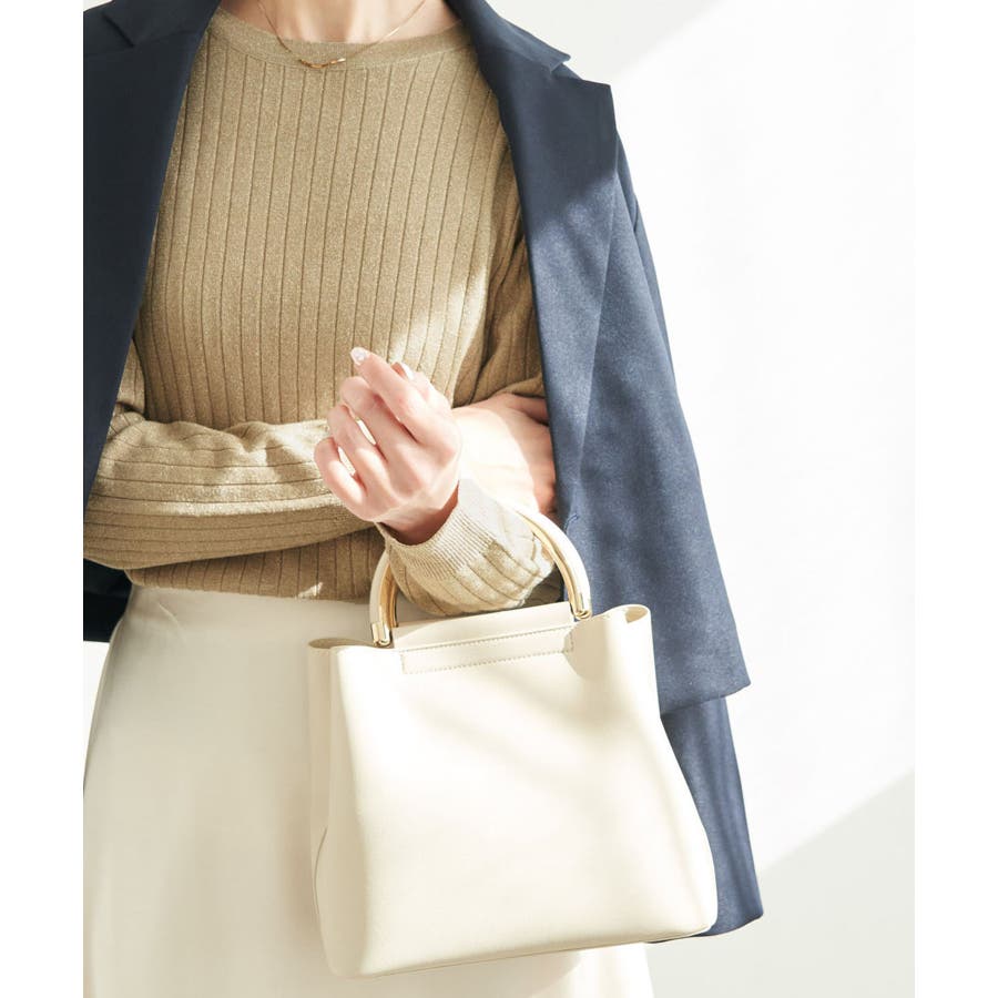 【デザイン・シルエット】 ・使い勝手の良い、ミドルサイズのハンドバッグ。 ・ショルダーストラップ付きの2WAY仕様。 ・メタルハンドルが立地なムードをアップ。 ・底マチがあり、収納力も万全。 【カラー】 ・ブラック、アイボリー、ブルーの3色展開。 【スタイリングポイント】 ・ブラックやアイボリーは、セレモニー対応も可能。 ・落ち着いた色合いの服が多い人は、ブルーでアクセントを添えるとグッド。 ----------------------------- ポケットの数:外0個、中1個 A4収納:不可能 長財布収納:可能 ショルダー紐:あり(長さ調整可) ----------------------------- ※撮影時の光、お使いのモニター環境によって色の見え方が違う場合がございます。 ※縦10cm×横20cm×マチ1.2cmの長財布(何も入っていない状態)で計測しております。 ※前回好評だったDメタルハンドルバッグ(品番:GIX63220)と同型。 ブラック(01)は継続カラーですが、生産時期によって色味は多少異なります。 キナリ(16)ブルー(45)は新色。