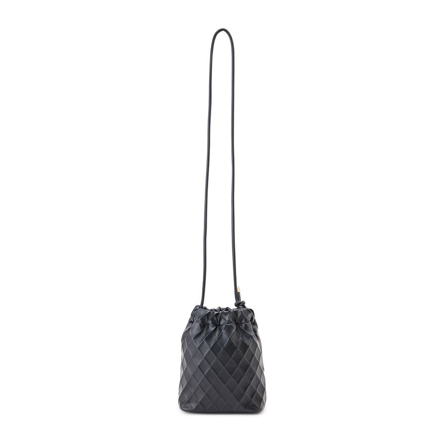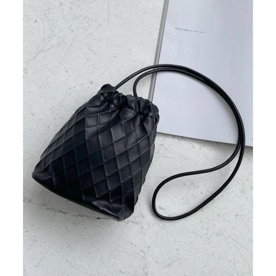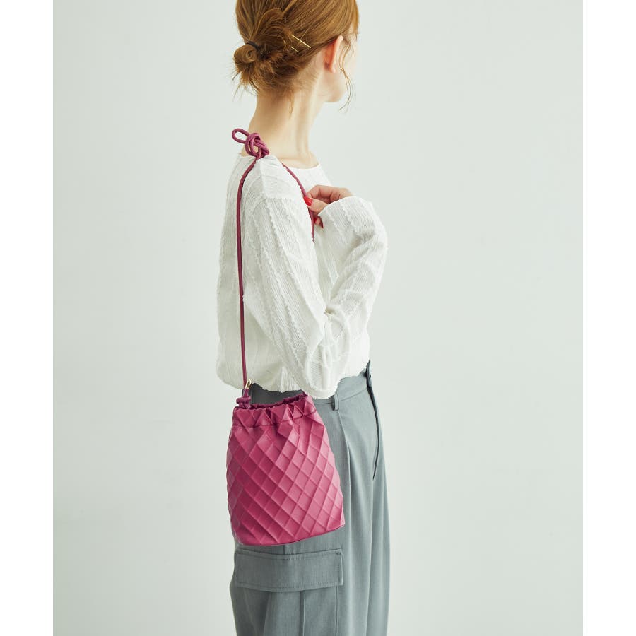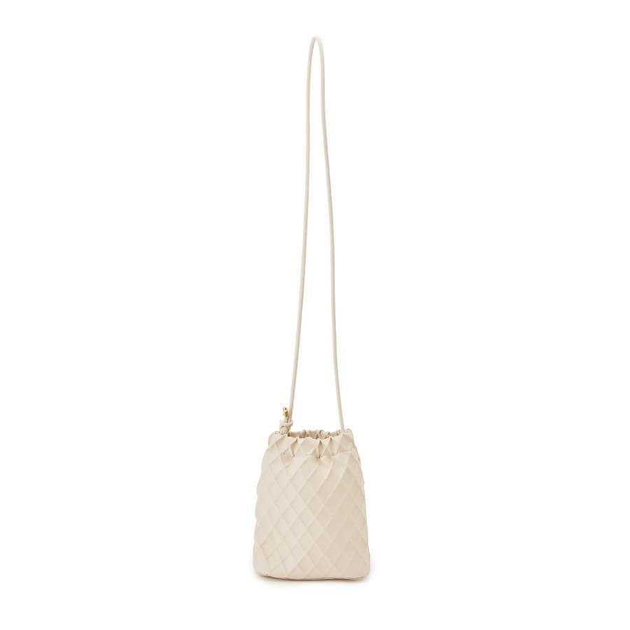 【デザイン・シルエット】 ・キルティング風のスクエア柄エンボス加工が施されたドローストリングバッグ。 ・小ぶりサイズで持ち運びがしやすいショルダータイプ。 ・間口を絞れるため、中身が見えない安心仕様。 【カラー】 ・ブラック、アイボリー、ピンク、シルバーの4色展開。 【スタイリングポイント】 ・ホリデーシーズンを彩るなら、ピンクやシルバーをチョイスして。 ・クールに決めたい人はブラックがおすすめ。 ----------------------------- ポケットの数:0個 A4収納:不可能 長財布収納:不可能 ショルダー紐:あり(結び目によって長さ調整可) ----------------------------- ※撮影時の光、お使いのモニター環境によって色の見え方が違う場合がございます。