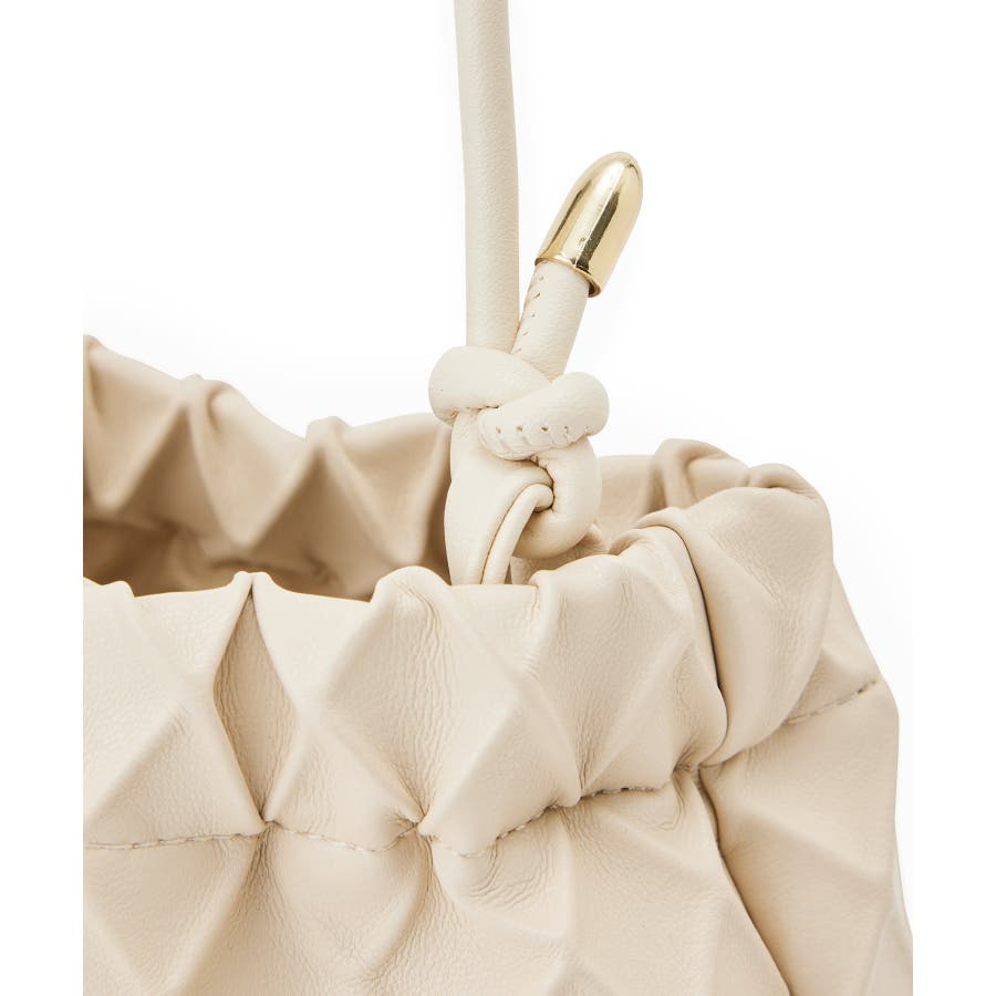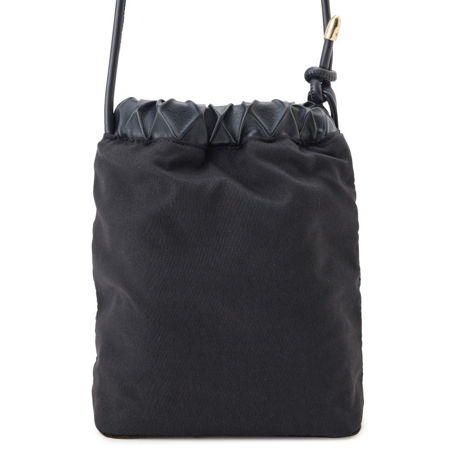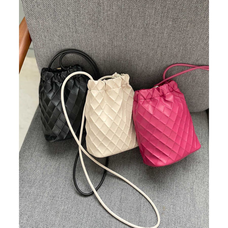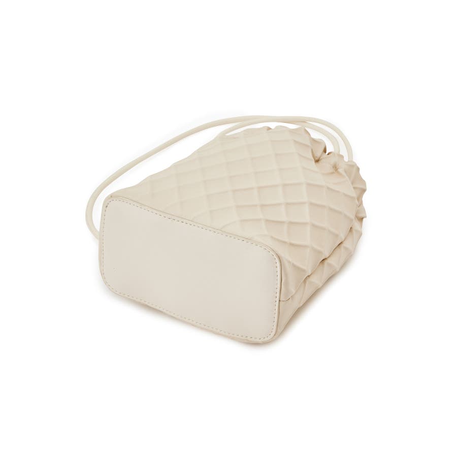 【デザイン・シルエット】 ・キルティング風のスクエア柄エンボス加工が施されたドローストリングバッグ。 ・小ぶりサイズで持ち運びがしやすいショルダータイプ。 ・間口を絞れるため、中身が見えない安心仕様。 【カラー】 ・ブラック、アイボリー、ピンク、シルバーの4色展開。 【スタイリングポイント】 ・ホリデーシーズンを彩るなら、ピンクやシルバーをチョイスして。 ・クールに決めたい人はブラックがおすすめ。 ----------------------------- ポケットの数:0個 A4収納:不可能 長財布収納:不可能 ショルダー紐:あり(結び目によって長さ調整可) ----------------------------- ※撮影時の光、お使いのモニター環境によって色の見え方が違う場合がございます。