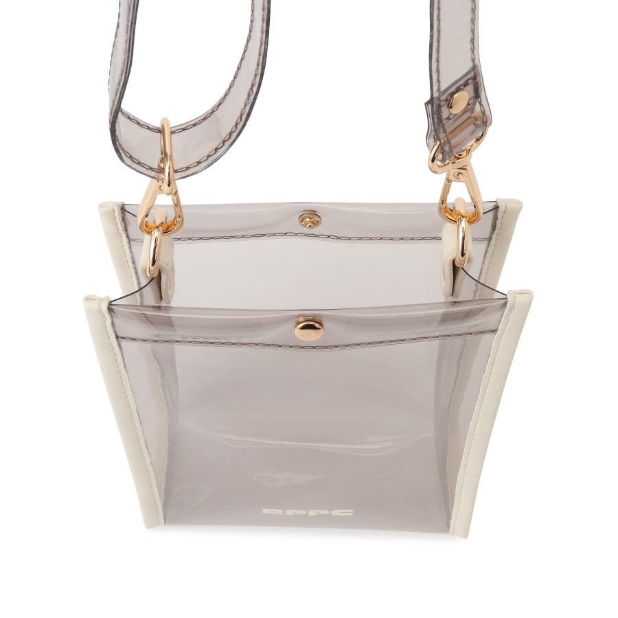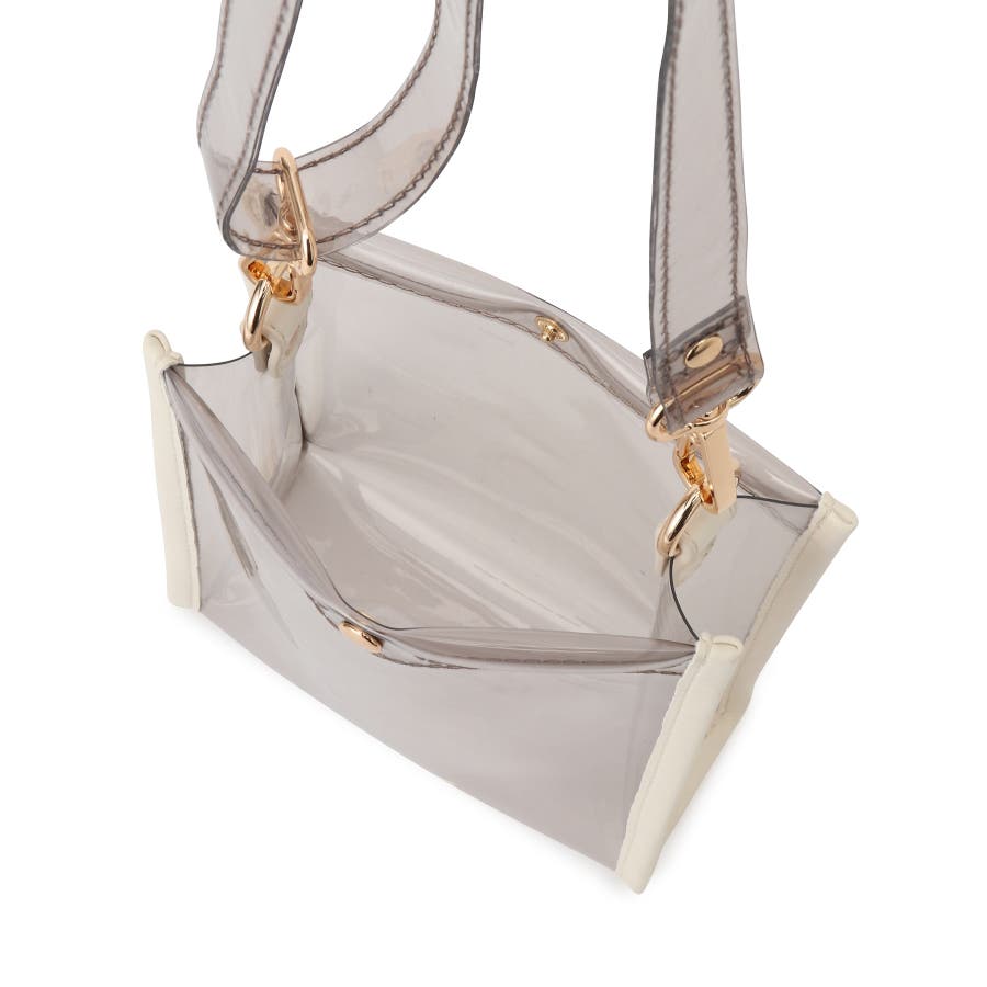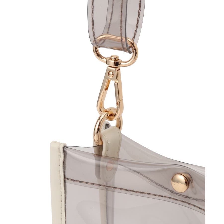 【デザイン・シルエット】 ・夏らしいクリアカラーのショルダーバッグ。 ・すっきりとした縦長のスクエア型で、収納力もある底マチ付き。 ・パイピングのカラーがアクセント。 ・ショルダーストラップは長さの調整が可能。 【カラー】 ・ライトグレー(08):クリアグレー×アイボリー ・オフホワイト(15):ミルキーホワイト×ミント 【スタイリングポイント】 ・海にプールに、夏らしいリゾートスタイルに合わせて。 ・普段の可愛らしいおでかけワンピースに合わせてもOK。 ----------------------------- ポケットの数:中0個、外0個 A4収納:不可能 長財布収納:不可能 ショルダー紐:あり(取り外し可、調節可) ----------------------------- ※撮影時の光、お使いのモニター環境によって色の見え方が違う場合がございます。