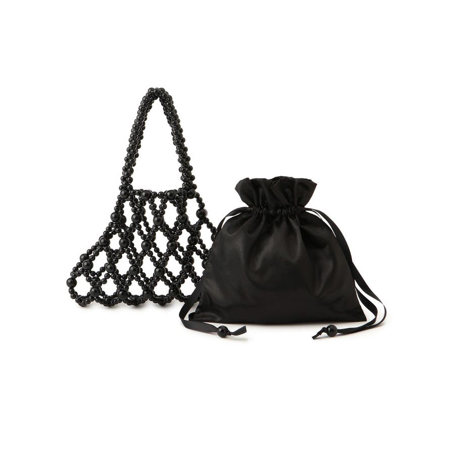 | 素材 | ブラック(01):(本体)プラスチックビーズ (巾着)ポリエステル 100% (テープ部分)ポリエステル 100%|オフホワイト(15):(本体)プラスチックビーズ (巾着)ポリエステル 100% (テープ部分)ポリエステル 100% |