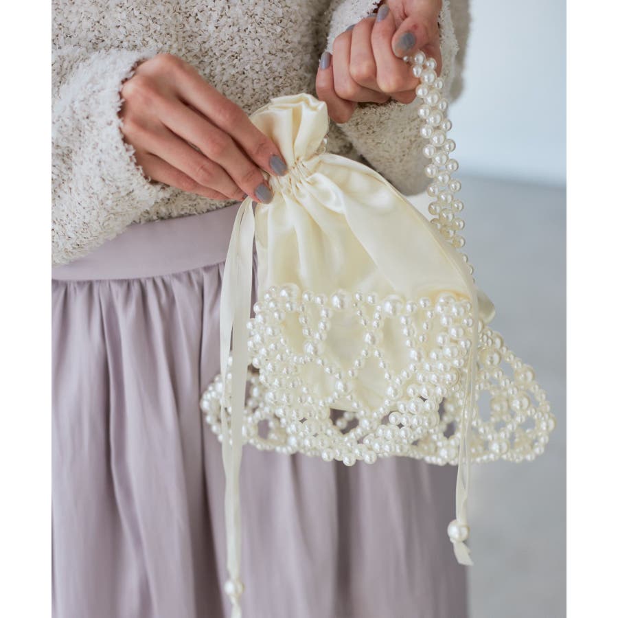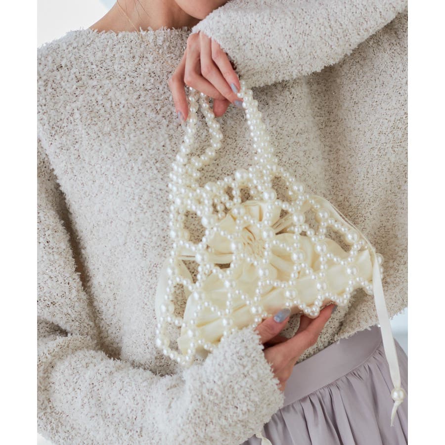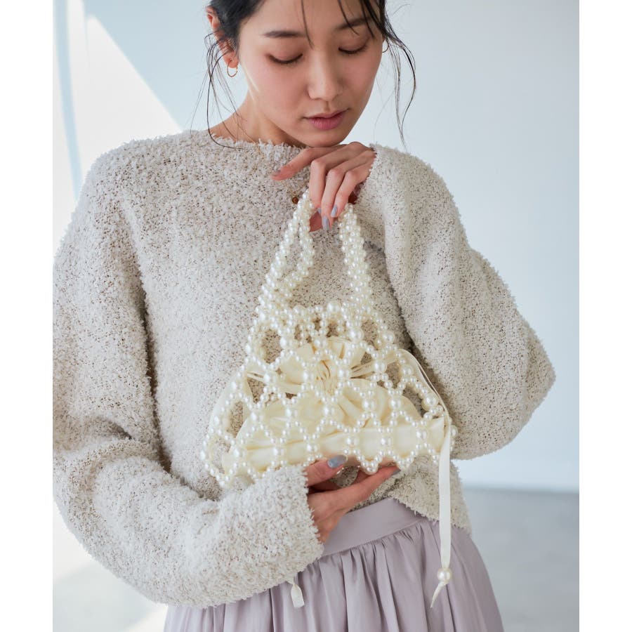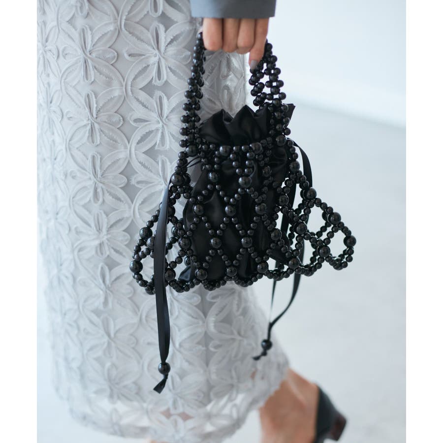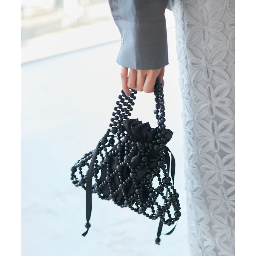 【デザイン・シルエット】 ・パールビーズを使った透かしハンドバッグ。 ・中身をガードするインポーチ付き。 【カラー】 ・ブラック、オフホワイトのモノトーン2色展開。 【スタイリングポイント】 ・結婚式や二次会などフォーマルな場面に取り入れるバッグとしても活躍。 ・普段使いで、カジュアルなデニムコーデに合わせるのもおしゃれ。 ・フェミニンな花柄ワンピースにマッチ。 ----------------------------- ポケットの数:中0個、外0個 A4収納:不可能 長財布収納:不可能 ショルダー紐:なし その他仕様:ポーチ取り外し可能 ----------------------------- ※撮影時の光、お使いのモニター環境によって色の見え方が違う場合がございます。