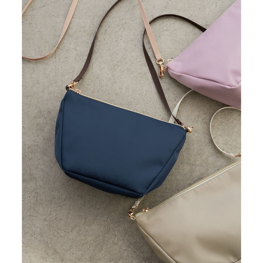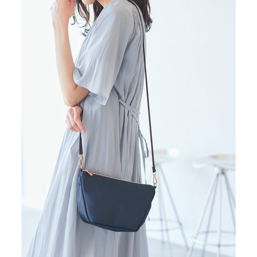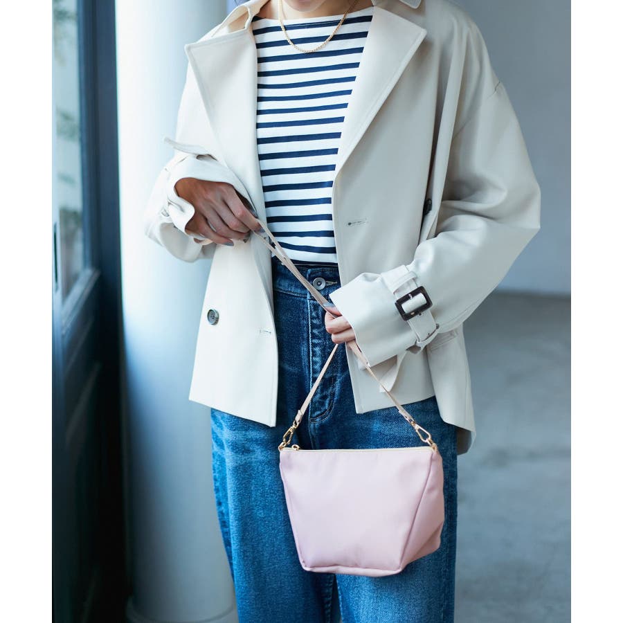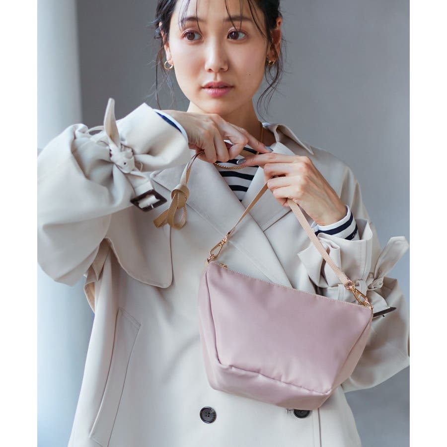 【素材感】 ・少しの雨なら安心の撥水加工。 【デザイン・シルエット】 ・舟形フォルムの可愛らしいミニショルダーバッグ。 ・底マチがあり、見た目以上の収納力を発揮。 ・細身のショルダーストラップでほんのりと女性らしさをプラス。 ・ファスナートップでセキュリティ面も安心。 【カラー】 ・グレージュ、ネイビー、ライトピンクの3色展開。 【スタイリングポイント】 ・荷物の多いママは、財布やスマートフォンのみ入れて持ち歩くと両手が空いておすすめ。 ・季節感を出すなら、ライトピンクが春らしい印象に。 ・どんなスタイルにも合うのがグレージュとネイビー。 ----------------------------- ポケットの数:中1個,外1個 A4収納:不可能 長財布収納:可能 ショルダー紐:あり(長さ調節不可能、取り外し可能) ----------------------------- ※撮影時の光、お使いのモニター環境によって色の見え方が違う場合がございます。