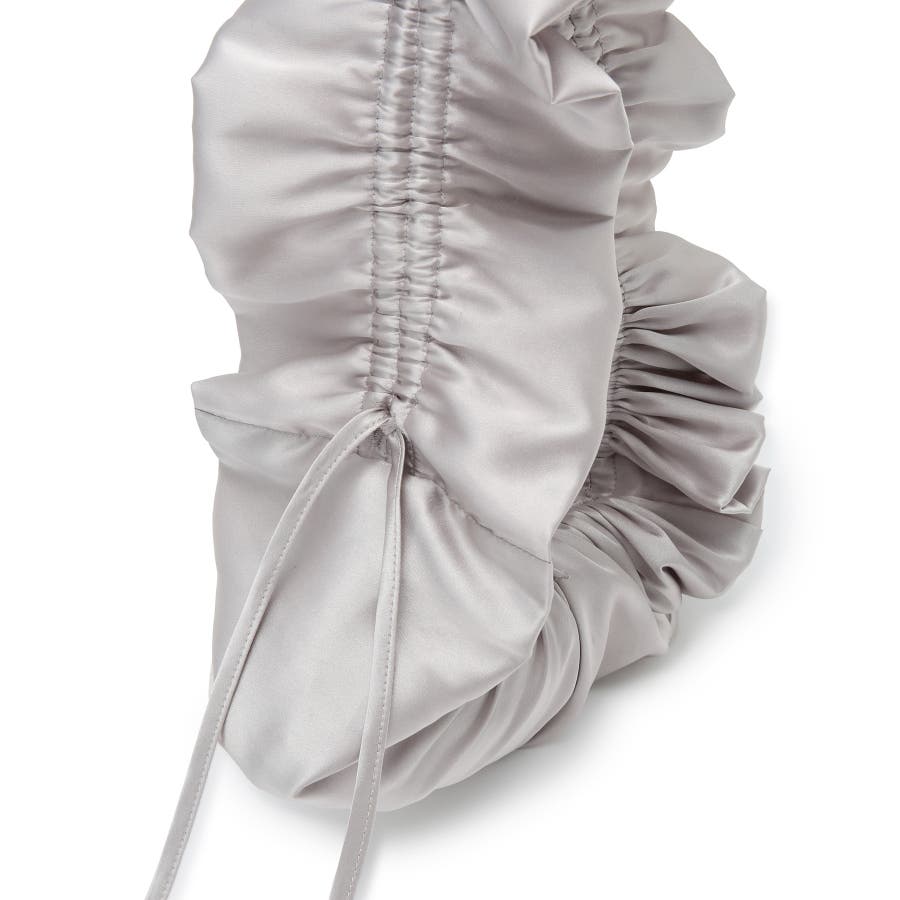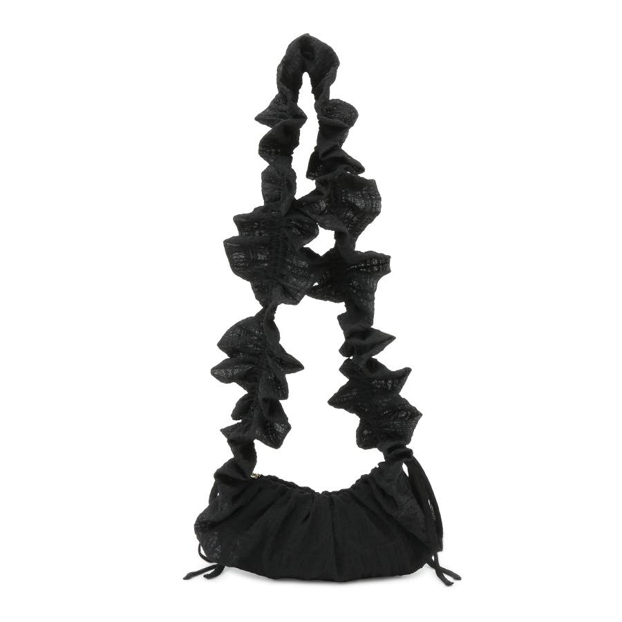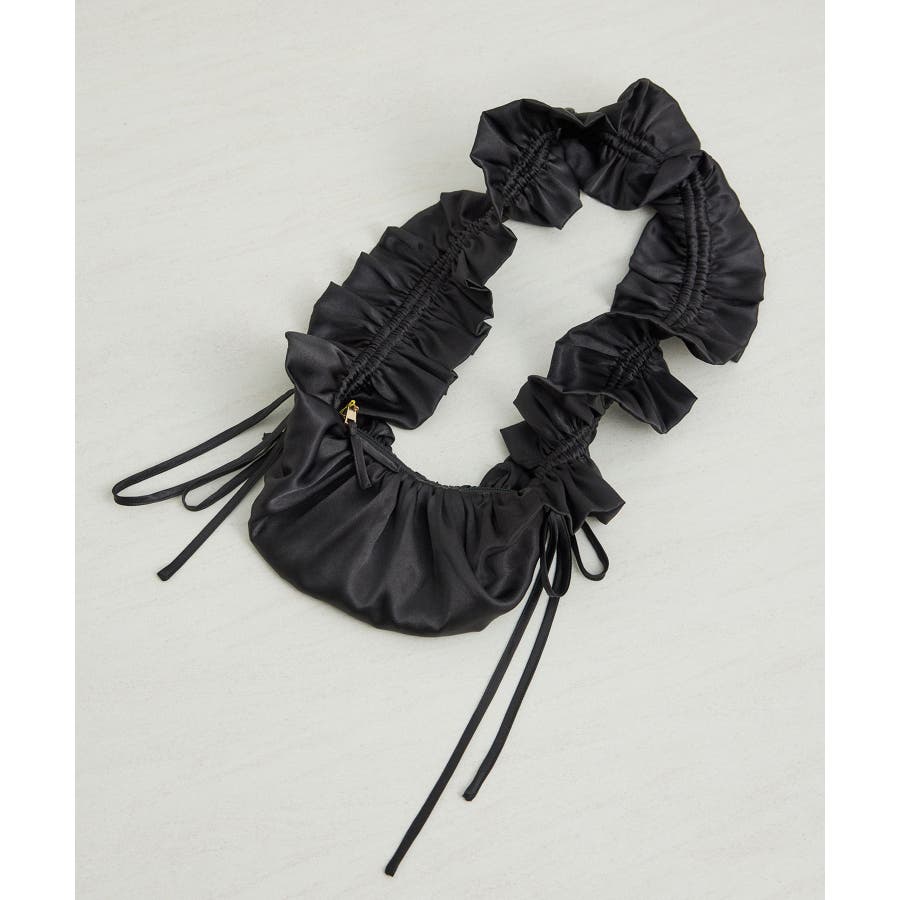 【デザイン・シルエット】 ・シャーリングデザインのストラップが特徴的なショルダーバッグ。 ・シャーリングはドローストリングで調整可能。 ・洋服の一部として取り入れられる、アクセサリー感覚のアイテム。 ・シャーリングを寄せて斜め掛けにしたり、肩掛けにしたりと楽しめる。 ・スマホが1つ入るサイズ感なのでお出かけにも◎ 【カラー】 ・カラーによって組成の混率が異なります。 ・ブラック(01):透かし素材 (表地)ポリエステル 99% ポリウレタン 1% (裏地)ポリエステル 100% ・ブラック系(02)グレー(07):サテン (表地)ポリエステル 97% ポリウレタン 3% (裏地)ポリエステル 100% ・キナリ(16):毛足 (表地)ポリエステル 99% ポリウレタン 1% (裏地)ポリエステル 100% 【スタイリングポイント】 ・デイリーのカジュアルスタイルにポイント使いで取り入れるのが◎。 ・コンパクトサイズでトラベルなどにも活躍。 ----------------------------- ポケットの数:中0個、外0個 A4収納:不可能 長財布収納不可能 ショルダー紐:サイドの紐で長さ調節可能 ----------------------------- ※撮影時の光、お使いのモニター環境によって色の見え方が違う場合がございます。