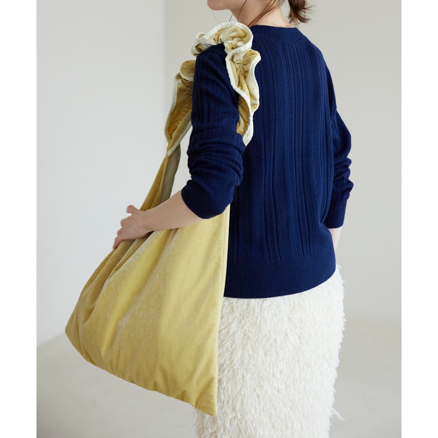 【デザイン・シルエット】 ・光沢のあるベロアとフリルハンドルがマッチした、華やかなワンショルダーバッグ。 ・下2つのボタンを留めれば、コンパクトサイズにもなる2WAY仕様。 ・軽やかで持ち運びがしやすく、見た目以上に収納力もアリ。 ・フラットタイプで、肩掛けしてもかさばらないのが◎。 【カラー】 ・ブラック、ブルー、ピンク、イエローの彩り豊かな4色展開。 【スタイリングポイント】 ・ブラックはフォーマルスタイルのサブバッグに最適。 ・シンプルな装いには、色味のあるものでアクセントにして。 ・柄物のワンピースなども相性抜群。 ----------------------------- ポケットの数:外0個、中1個 A4収納:可能 長財布収納:可能 ショルダー紐:なし ----------------------------- ※撮影時の光、お使いのモニター環境によって色の見え方が違う場合がございます。