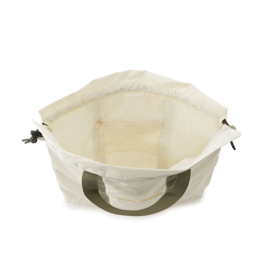 【素材感】 ・軽い雨なら弾く、撥水素材のナイロンバッグ。 【デザイン・シルエット】 ・たっぷり入る縦長のフォルムで、持ち方を選べる3WAY仕様。 ・間口は目隠しのできるドローコード仕様。 ・便利なアウトポケット付き。 【カラー】 ・ブラック、アイボリーのベーシックなモノクロカラーを2色展開。 【スタイリングポイント】 ・ミニバッグとの併用でサブバッグとして取り入れても◎。 ・デイリーのカジュアルコーデにマッチ。 ----------------------------- ポケットの数:中2個、外1個 A4収納:可能 長財布収納:可能 ショルダー紐:あり(調節可能、取り外し可能) ----------------------------- ※撮影時の光、お使いのモニター環境によって色の見え方が違う場合がございます。