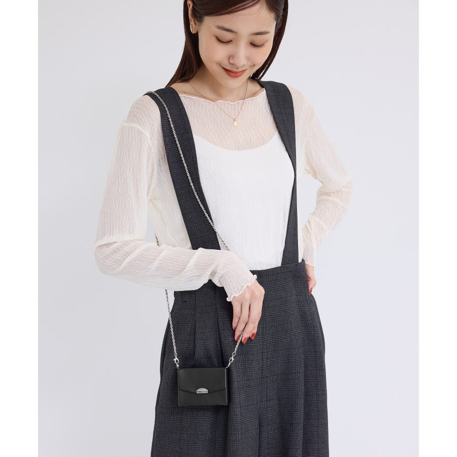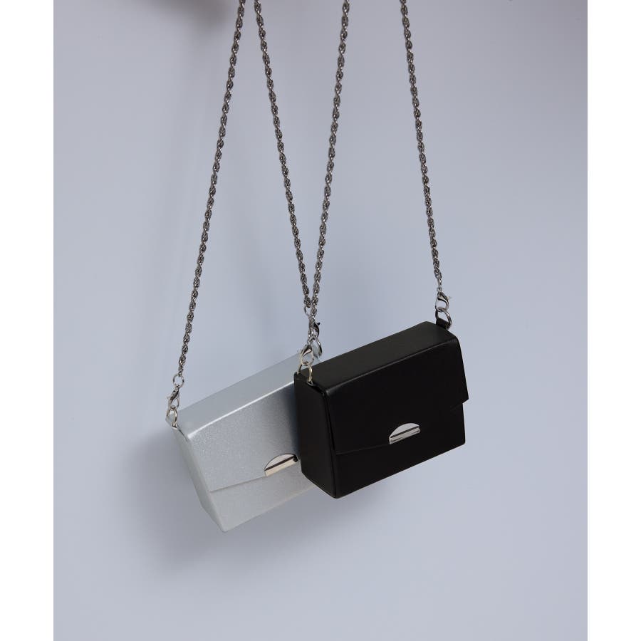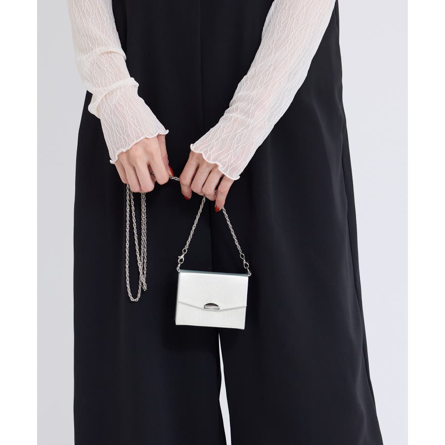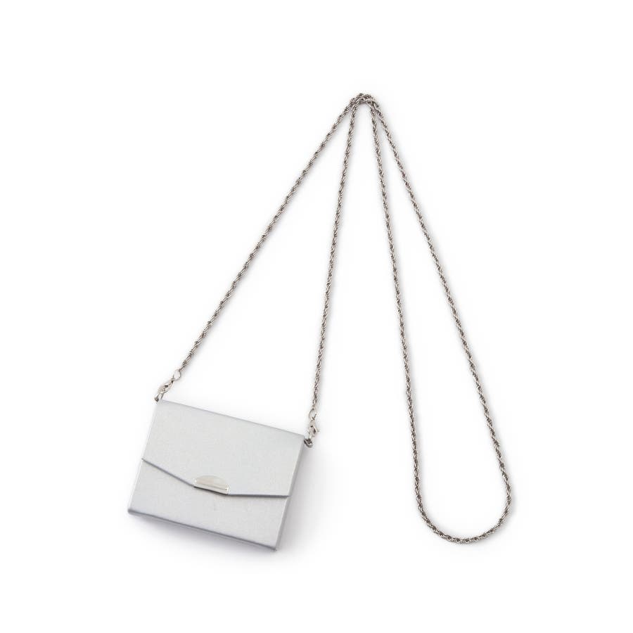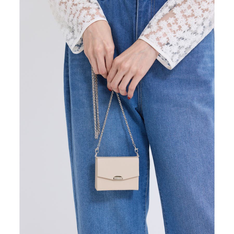 【デザイン・シルエット】 ・マイクロサイズが可愛らしい、クラシカルなチェーンショルダーバッグ。 ・すっきりとしたスクエアフォルムと、レトロなフラップデザインが特徴。 ・中にはミラーがついており、メイクのちょっとしたお直し用にも活躍。 ・薬用リップが入るほどの大きさ。 【カラー】 ・ブラック、アイボリー、シルバーの合わせやすい3色を展開。 【スタイリングポイント】 ・お好みのチャームを飾ってオリジナリティを加えて。 ・肩掛けすると大人っぽく、クロスボディにするとややカジュアルな印象に。 ・ドレスアップにも対応。 ----------------------------- ポケットの数:中0個、外0個 A4収納:不可能 長財布収納:不可能 ショルダー紐:あり(調節不可、取り外し可) ----------------------------- ※撮影時の光、お使いのモニター環境によって色の見え方が違う場合がございます。
