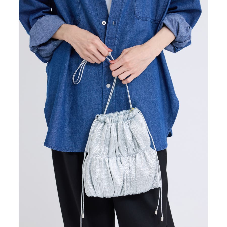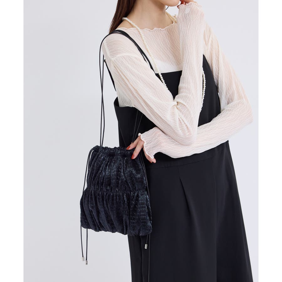 ・きらめくグリッターのシャーリングバッグ。 ・細身のブレードショルダーストラップが特徴。 ・日常使いのしやすいミドルサイズ。 【カラー】 ・ブラック、シルバーのシックな2色展開。 【スタイリングポイント】 ・ニットにジーンズのラフなコーデにアクセサリー感覚で取り入れて、 ・フォーマルバッグとしても対応可能。 ----------------------------- ポケットの数:中1個、外0個 A4収納:不可能 長財布収納:可能 ショルダー紐:あり(調節不可、取り外し不可) ----------------------------- ※撮影時の光、お使いのモニター環境によって色の見え方が違う場合がございます。