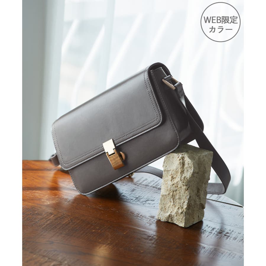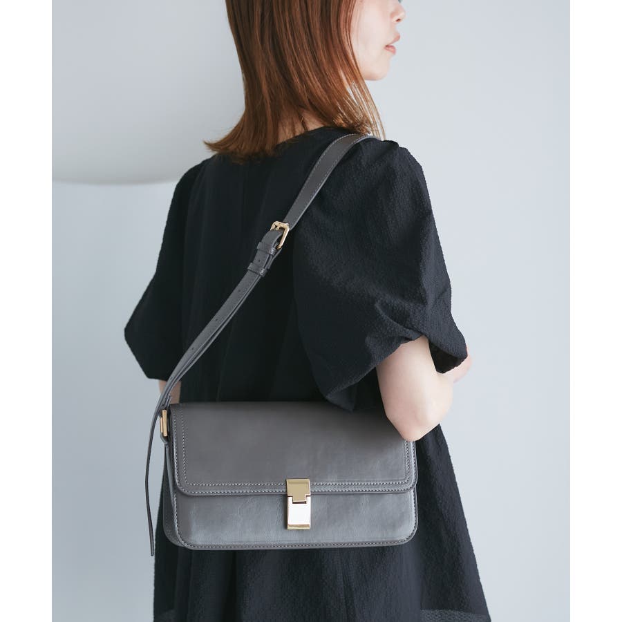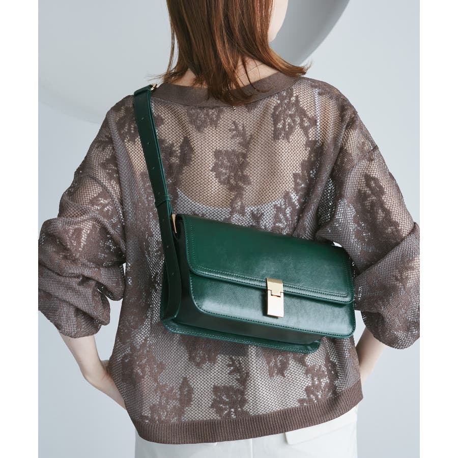 ・横長フォルムのスクエア型ショルダーバッグ。
