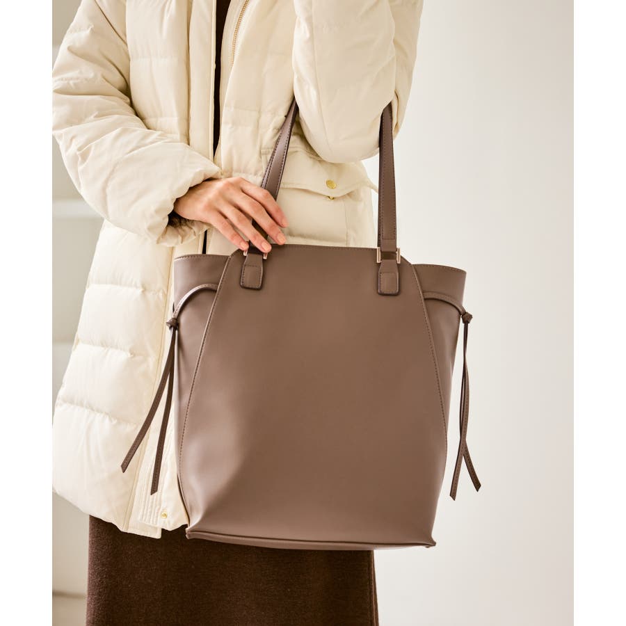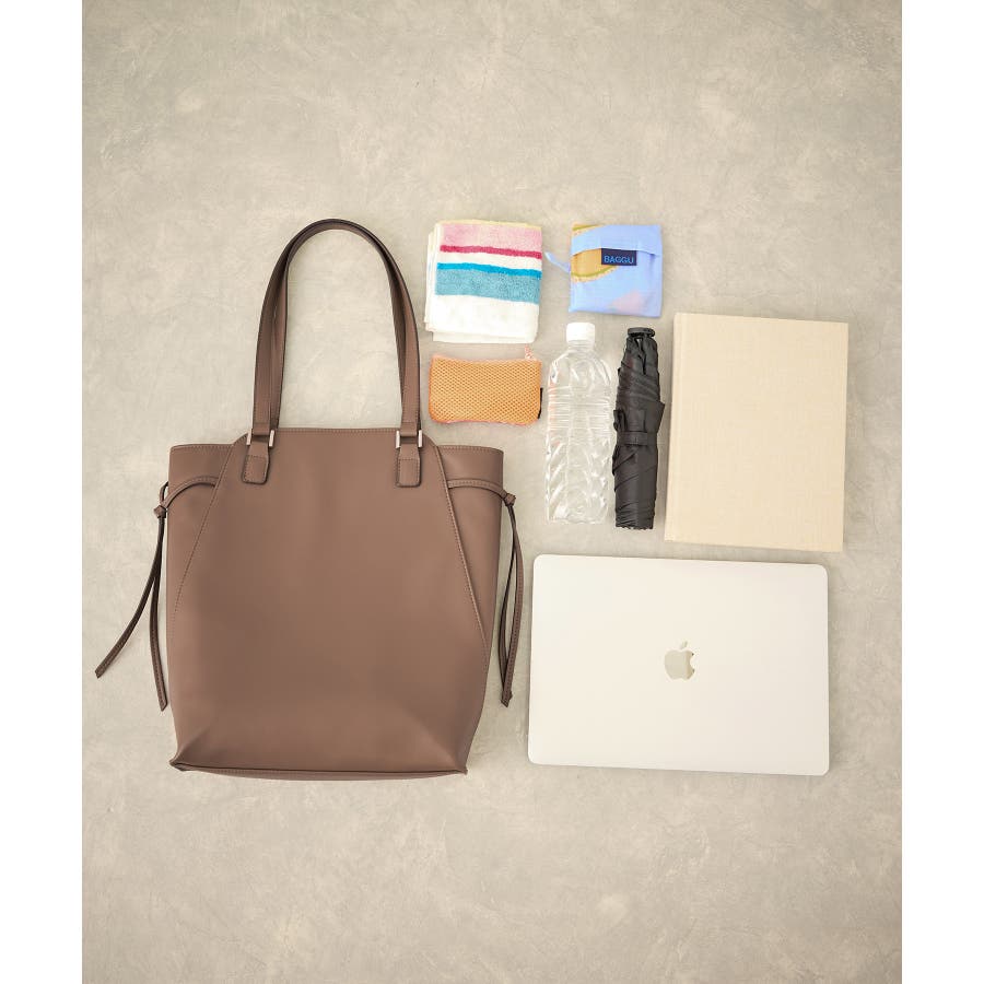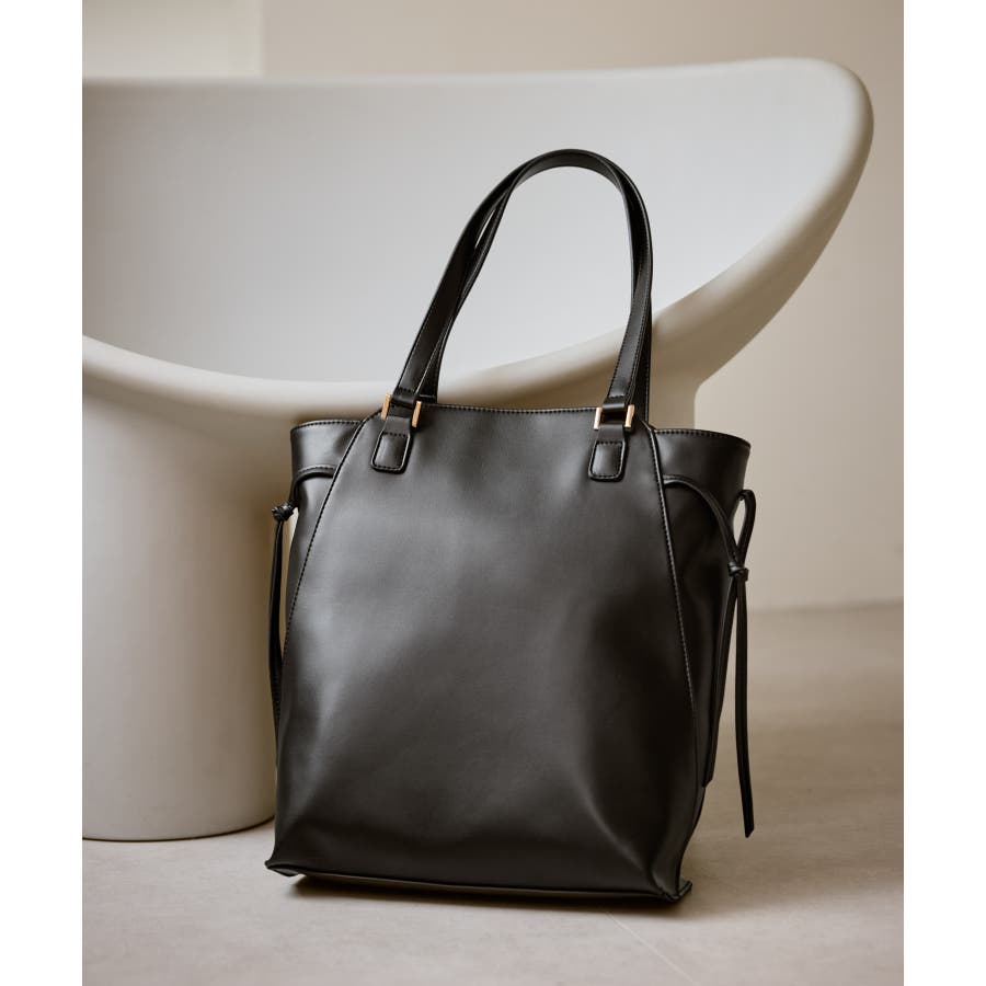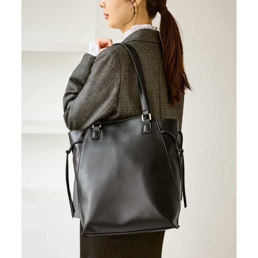 ・シンプルな勝手の良い合成皮革バッグは通勤/オフィスカジュアルにもおすすめ。