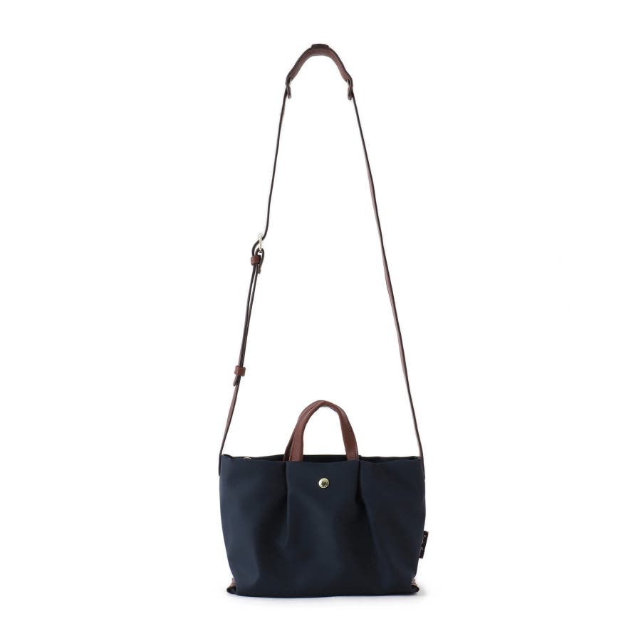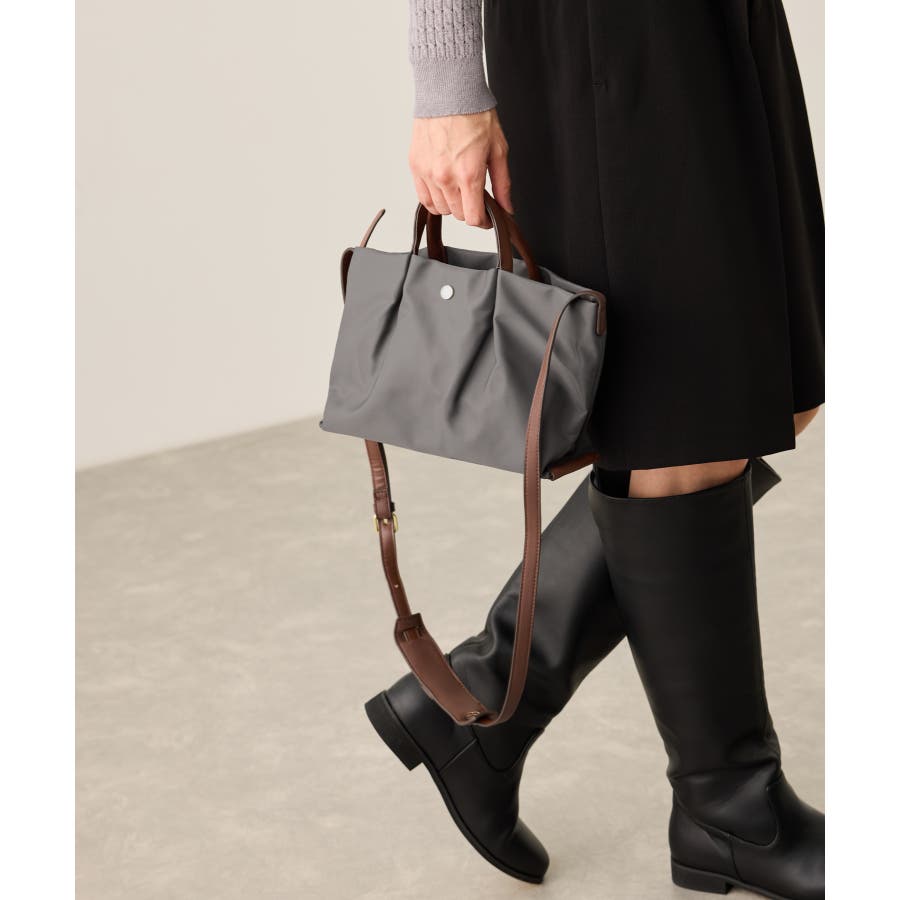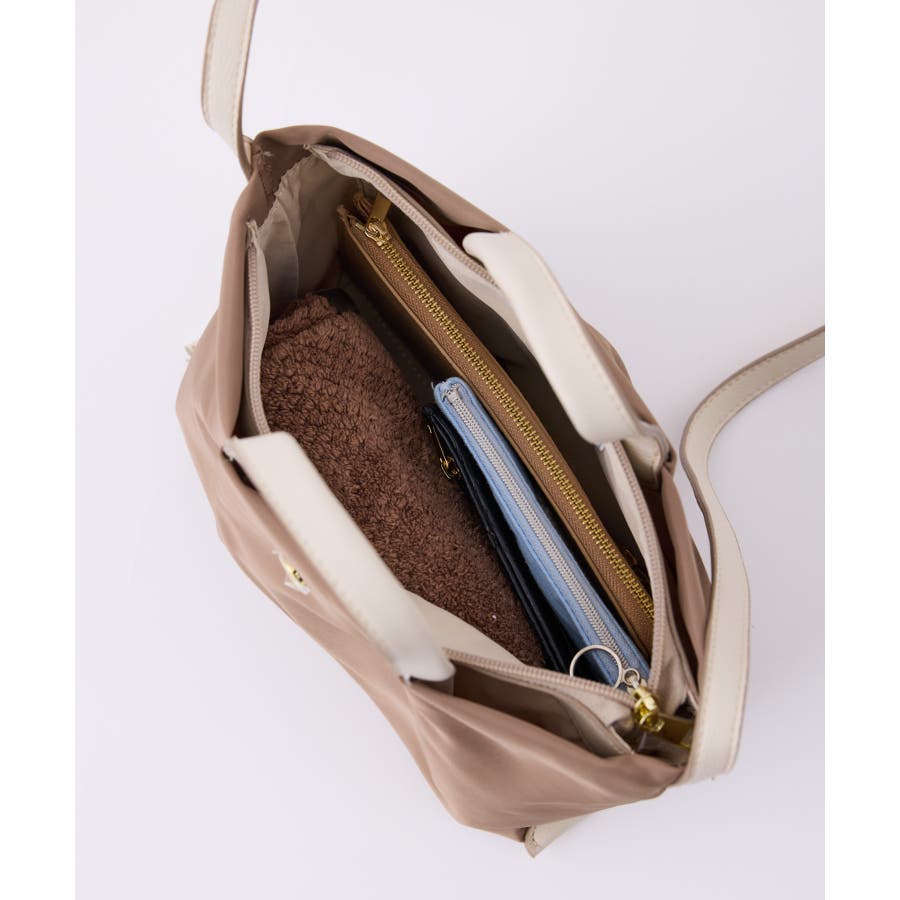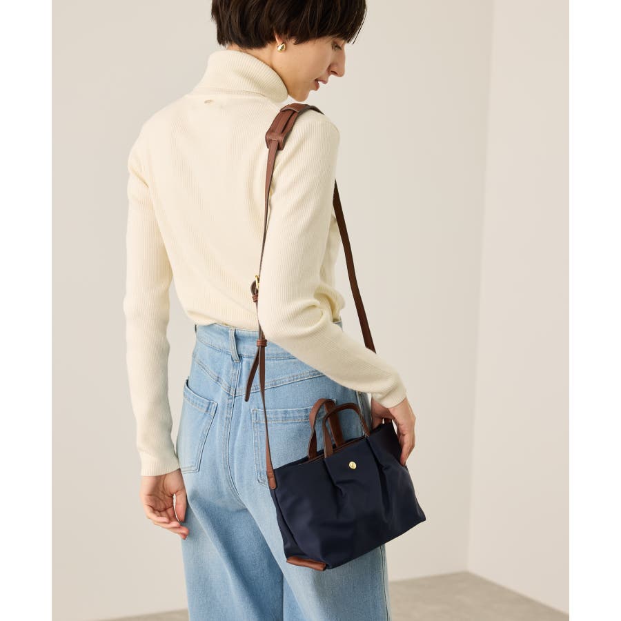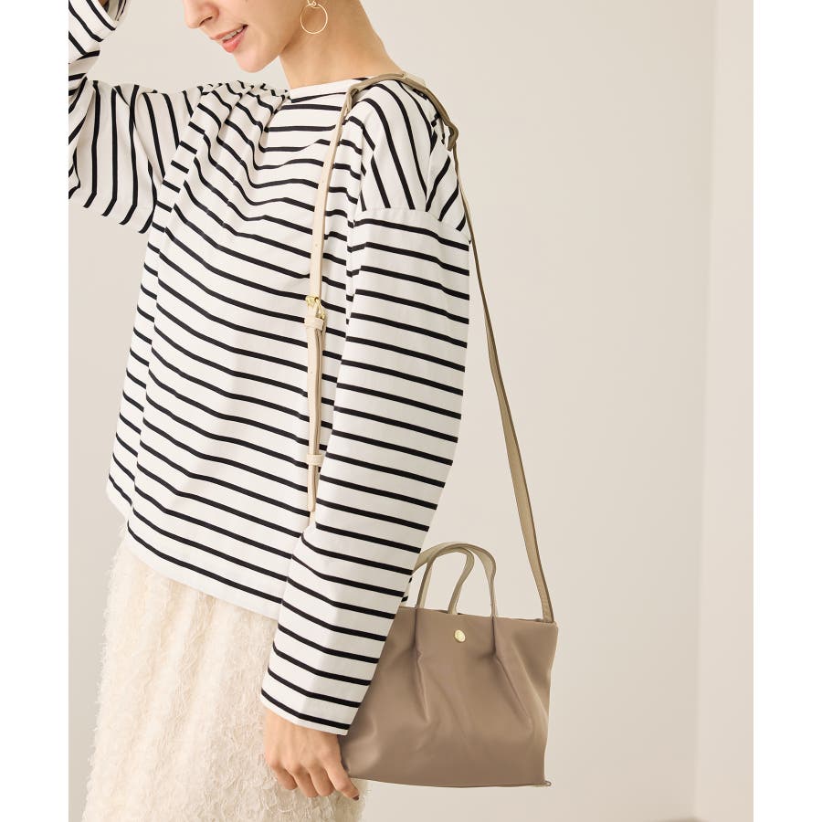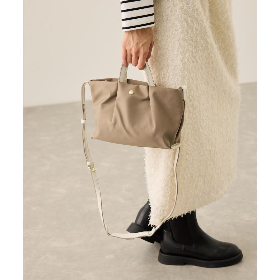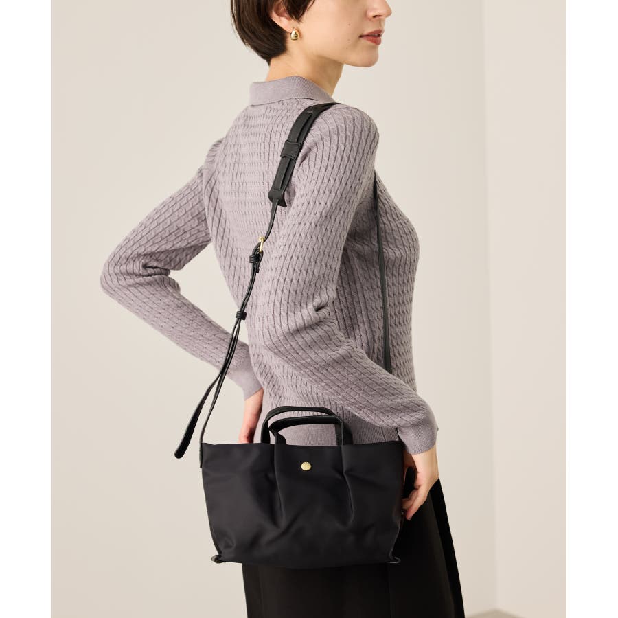 ・上品な光沢のあるナイロンに、手触りの良い柔らかい合皮を使い合わせたショルバーバッグ。