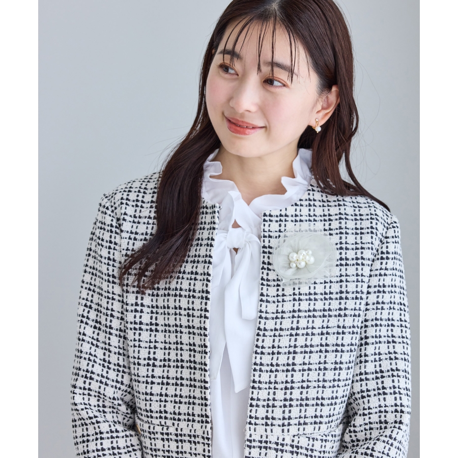 ・透け感のあるオーガンジー素材を重ねた、立体感のあるフラワーモチーフ。