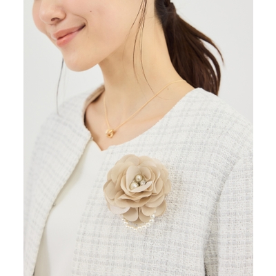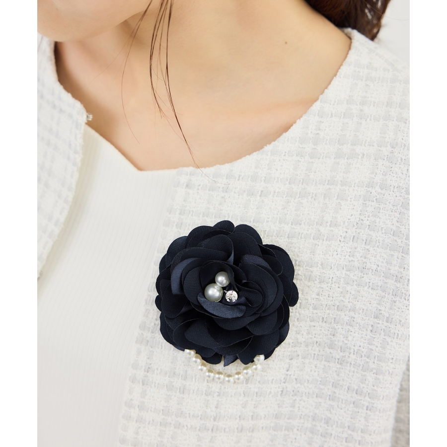 パール×サテンフラワーコサージュ