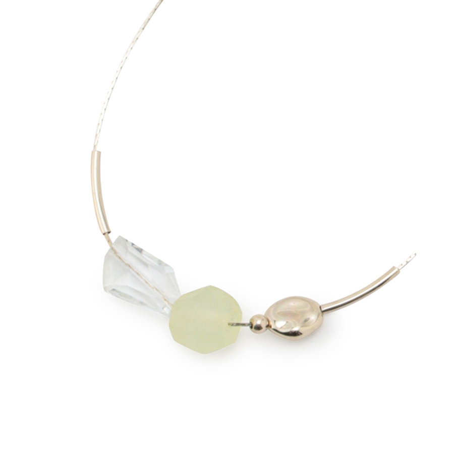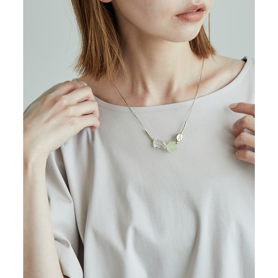 【素材感】 ・もともと、板ガラスやビンだった廃棄ガラスの破片を溶かさずに整形して穴を開け、ビーズに仕立てたサステナブルなガラスビーズ。 【デザイン・シルエット】 ・カットビーズを組み合わせたチェーンネックレス。 【カラー】 ・ブルー、レモンイエローの明るい2色展開。 【スタイリングポイント】 ・シンプルなタンクトップやキャミソールに合わせてヘルシーな印象に。 ・同シリーズでピアス(品番:GIZ23280)も展開しているので、合わせて取り入れるのもおすすめ。 ※撮影時の光、お使いのモニター環境によって色の見え方が違う場合がございます。