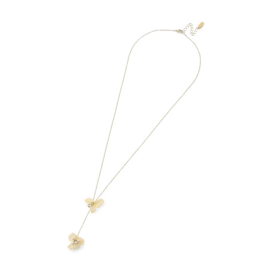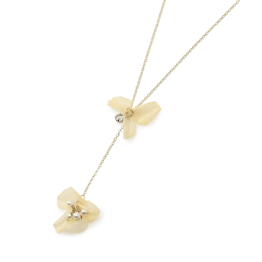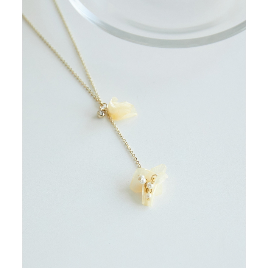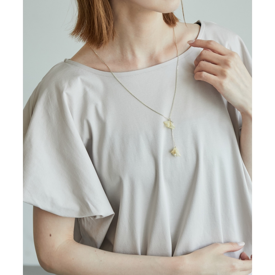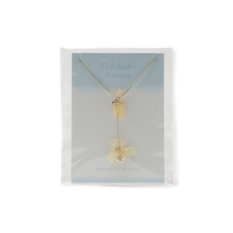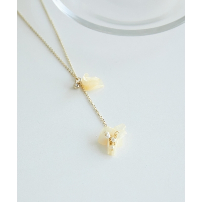 【素材感】 ・さかなのうろこを洗浄、乾燥させて染色したサステナブルな繊細パーツ。 ・軽く、ストローのような感触の素材感。 【デザイン・シルエット】 ・フラワーモチーフを先端に連ねた、華奢なチェーンネックレス。 【カラー】 ・ブルー、クリームイエローの柔らかな2色を展開。 【スタイリングポイント】 ・フラワー柄のウェアに合わせてリンクさせるとグッド。 ・シンプルなカットソーのスパイスにも◎。 ・同シリーズでイヤリング(品番:GIZ23270)も展開しているので、合わせて取り入れるのもおすすめ。 ※撮影時の光、お使いのモニター環境によって色の見え方が違う場合がございます。 ※天然のものになりますので、サイズの大小や色ムラがございます。乾燥した場所での保管をお願いいたします。