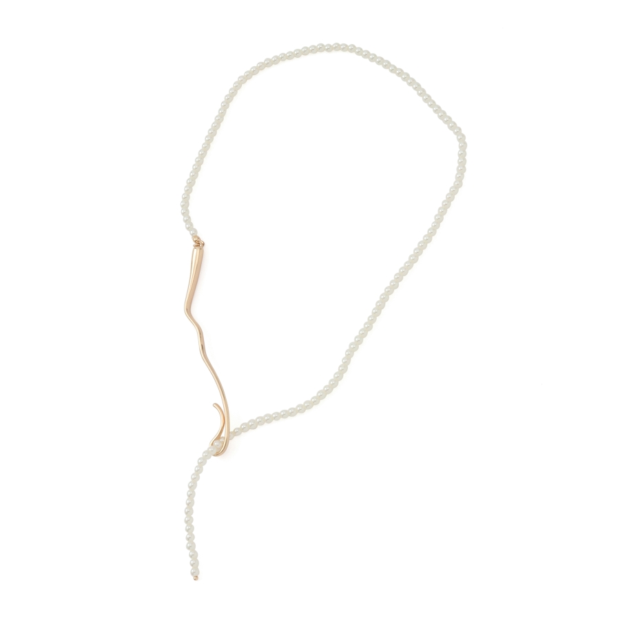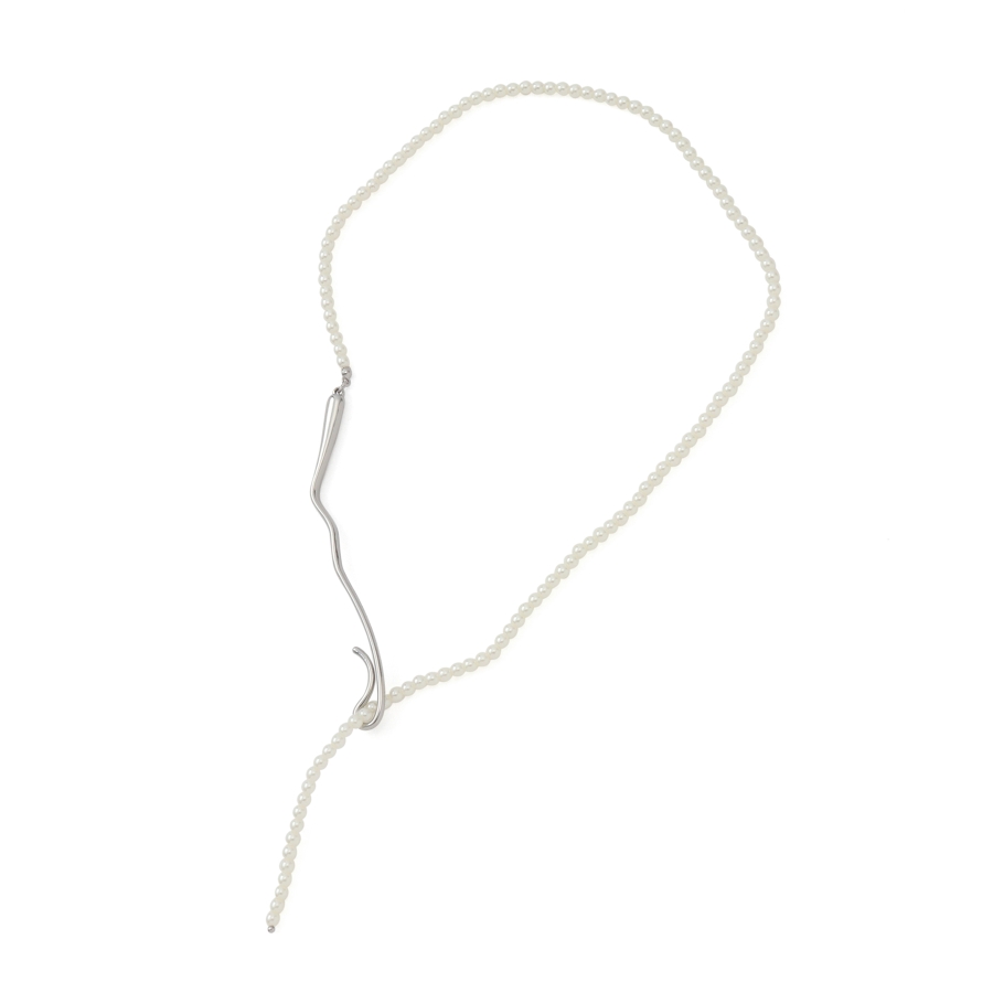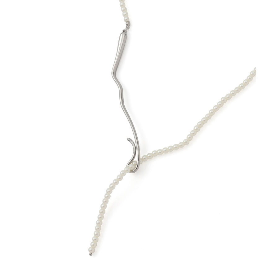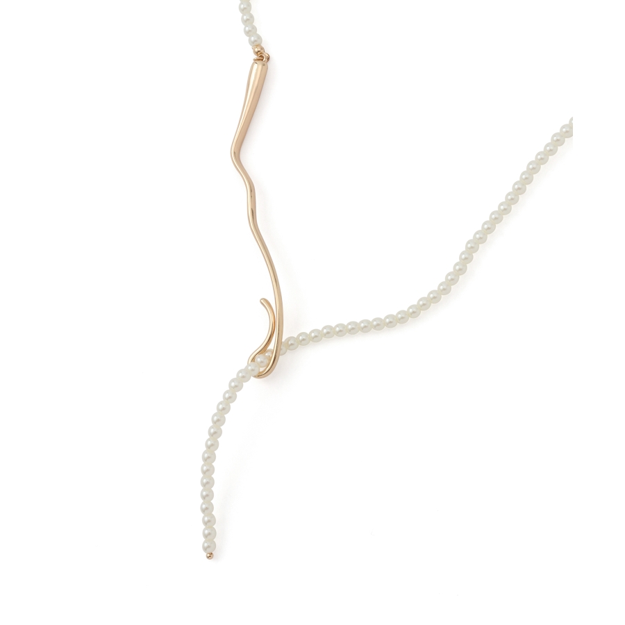 【デザイン・シルエット】 ・小粒のパールビーズとメタルパーツを組み合わせた、Y字デザインのネックレス。 ・留め具の位置で若干のアレンジが可能。 【カラー】 ・ゴールド、シルバーの2色展開。 【スタイリングポイント】 ・ヘルシーなタンクトップを女性らしく見せたいときにプラスして。 主張が強すぎず、オンオフ兼用可能。 ※撮影時の光、お使いのモニター環境によって色の見え方が違う場合がございます。