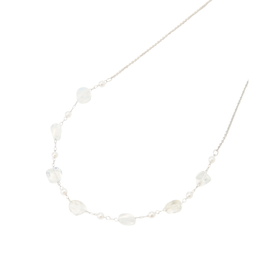 【デザイン・シルエット】 ・アジャスタブル仕様で調整可能なロングチェーンネックレス。 ・繊細なチェーンに、ランダムに飾った、クリアカラーのストイーンパーツがポイント。 【カラー】 ・ゴールド、シルバーの2色展開。 【スタイリングポイント】 ・シンプルなカットソーにワンポイントで合わせて。 ・クリアパーツなので、柄物のウェアでも邪魔しないのがポイント。 ※撮影時の光、お使いのモニター環境によって色の見え方が違う場合がございます。