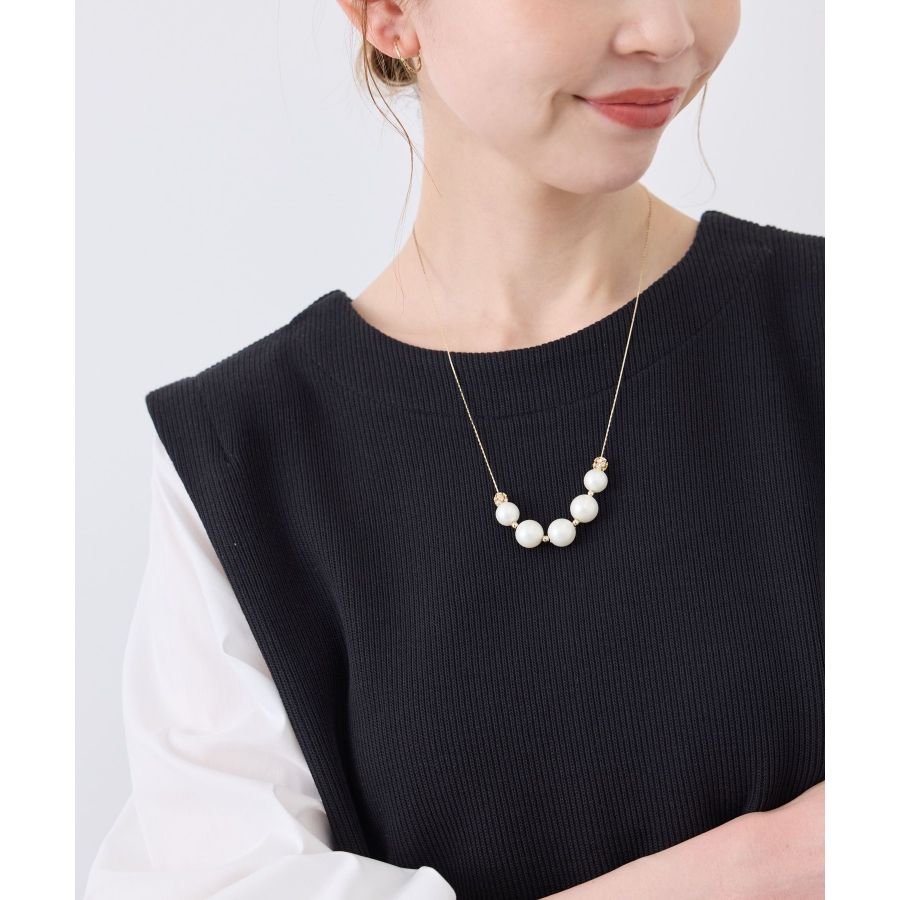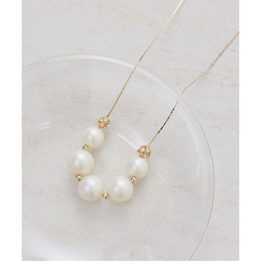 【デザイン・シルエット】 ・大粒のパールビーズときらめくロンデルをフロントに並べた、ラグジュアリーなチェーンネックレス。 ・細身のチェーンで女性らしさをアップ。 【カラー】 ・ゴールド、シルバーの2色展開。 【スタイリングポイント】 ・きれいめなシャツ、ニットの着こなしはもちろん、普段のボーダーTシャツ等に合わせてもOK。 ・オンオフ兼用可能。 ※撮影時の光、お使いのモニター環境によって色の見え方が違う場合がございます。
