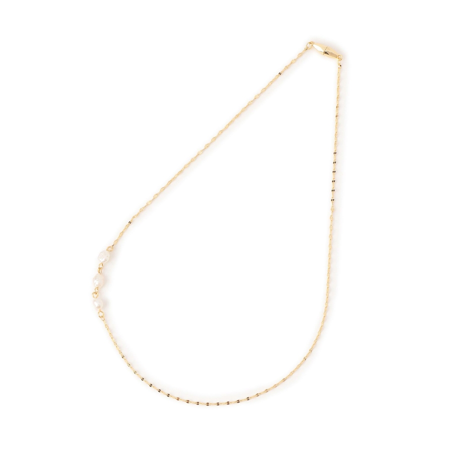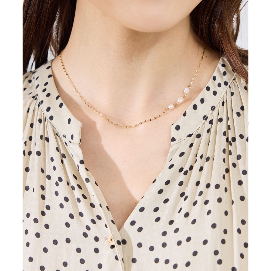 【デザイン・シルエット】 ・繊細なチェーンをベースに、アシンメトリーにあしらった淡水パールがポイントのプチペンダント。 ・着脱しやすいマグネット仕様の留め具を採用。 【カラー】 ・ゴールド(90):ゴールド ・シルバー(95):ピンク/シルバー 【スタイリングポイント】 ・シンプルなニットやカットソーに合わせて、お仕事シーンでも対応可能。 ・カジュアルデーは、ボーダーシャツにラフに取り入れると◎。 ※撮影時の光、お使いのモニター環境によって色の見え方が違う場合がございます。