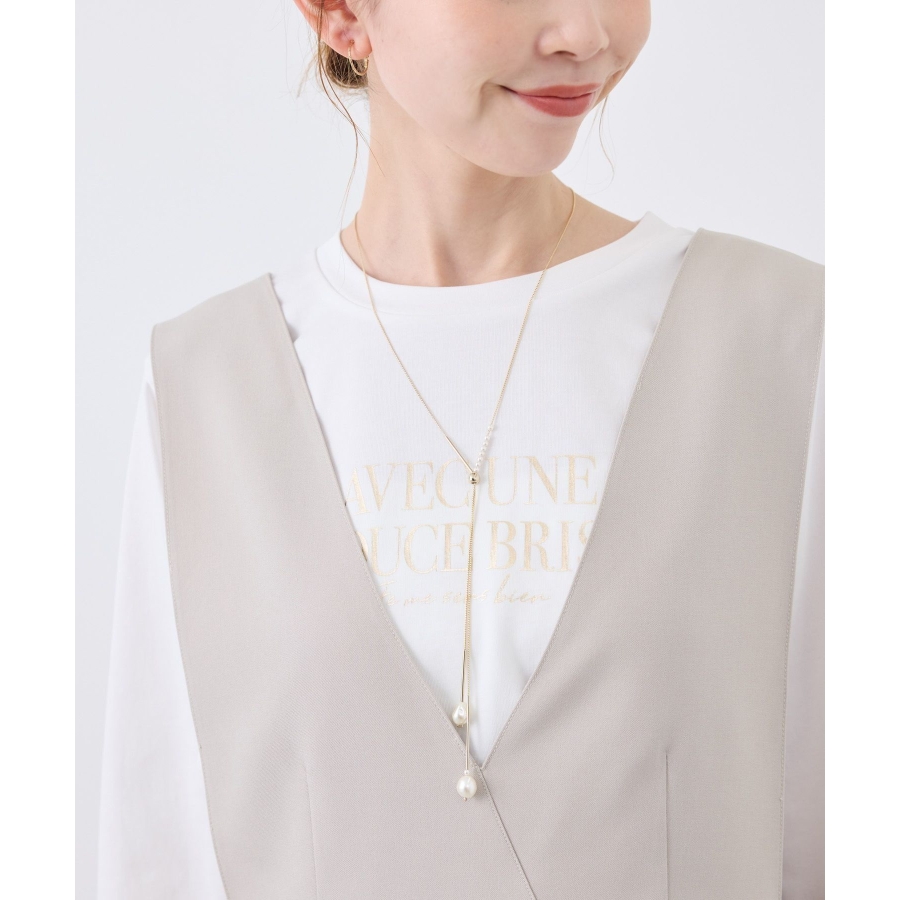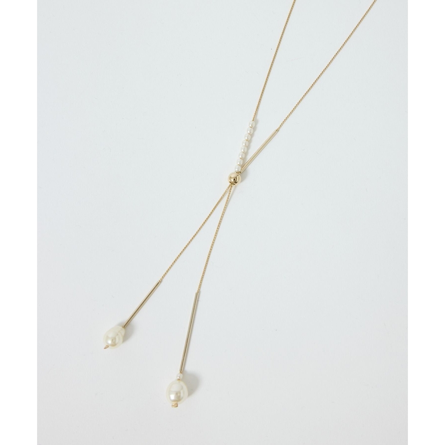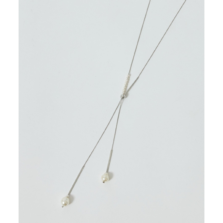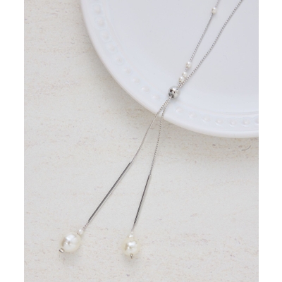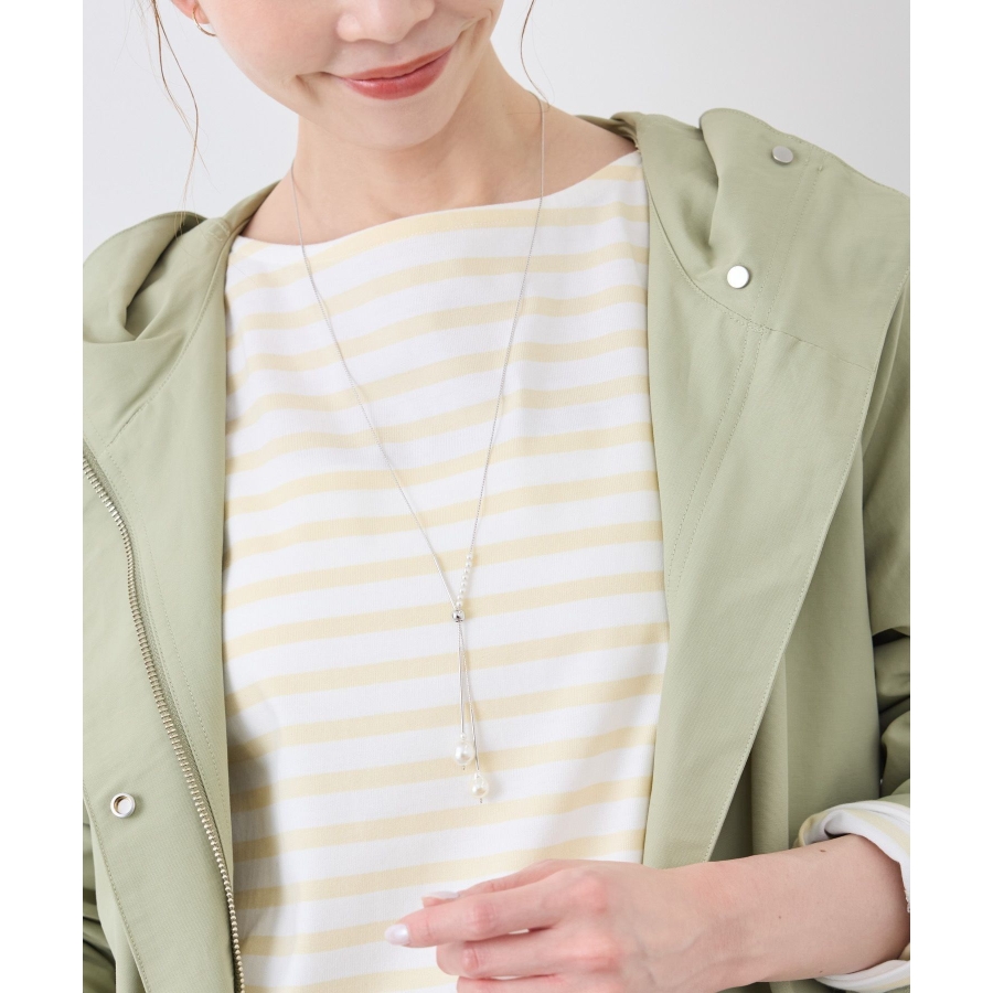 ・留め具のないラリエットタイプで、頭から通すだけのストレスフリーな着脱のパールトップネックレス。