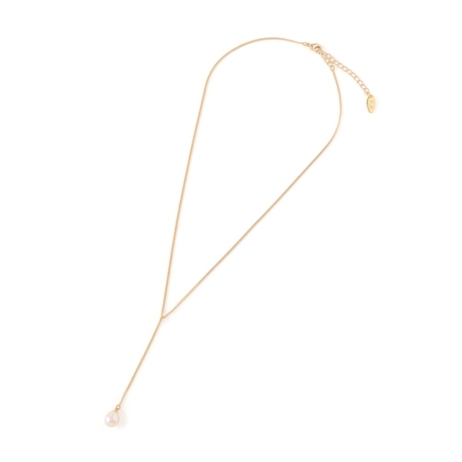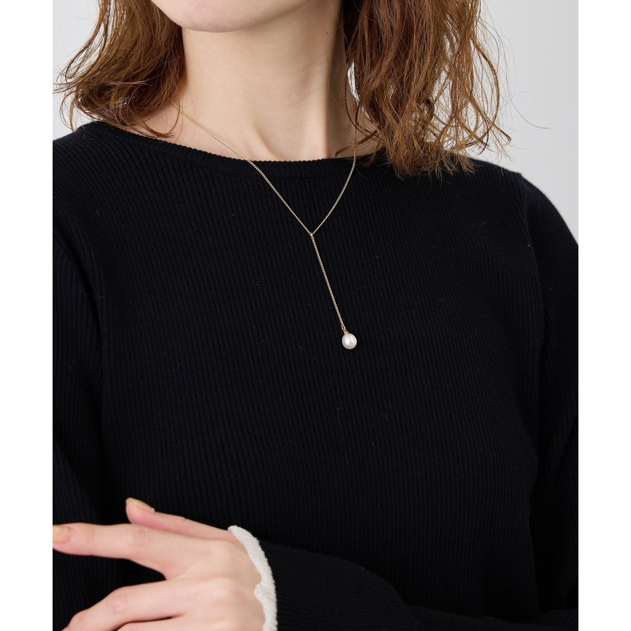 ・華奢なゴールドチェーンに淡水パールをあしらった、上品で女性らしいY字デザインのネックレス。
