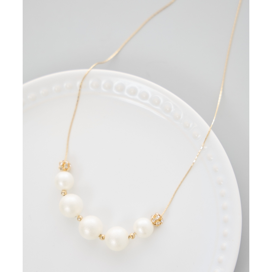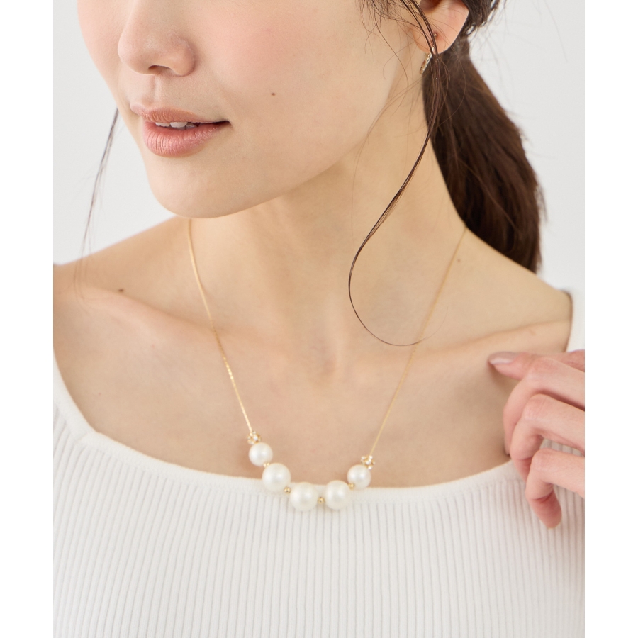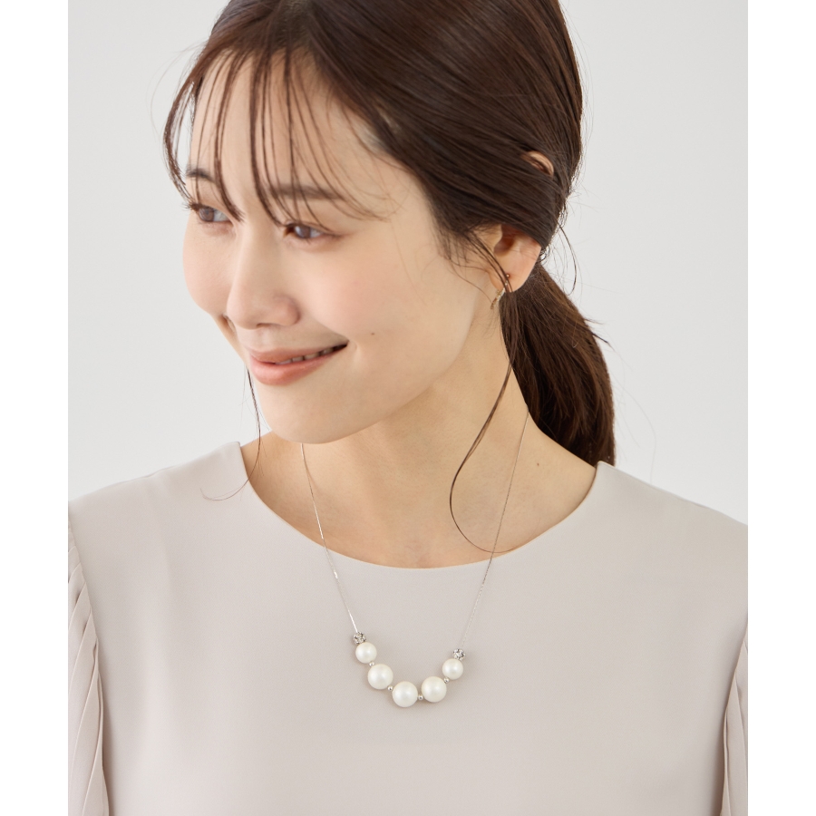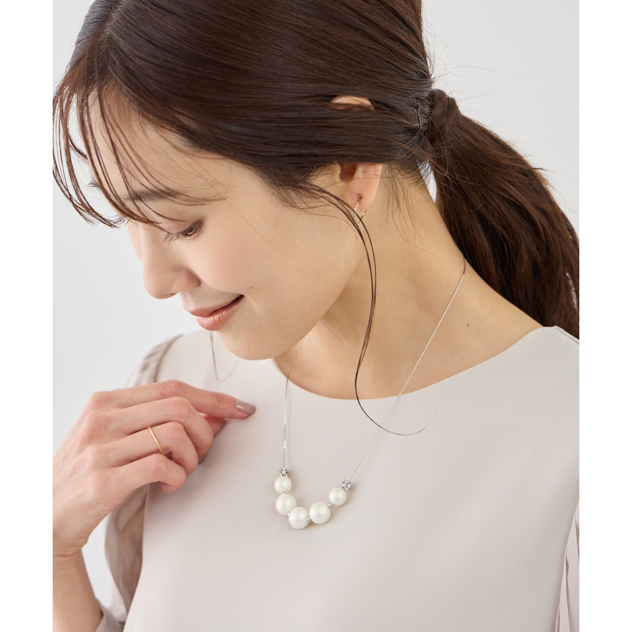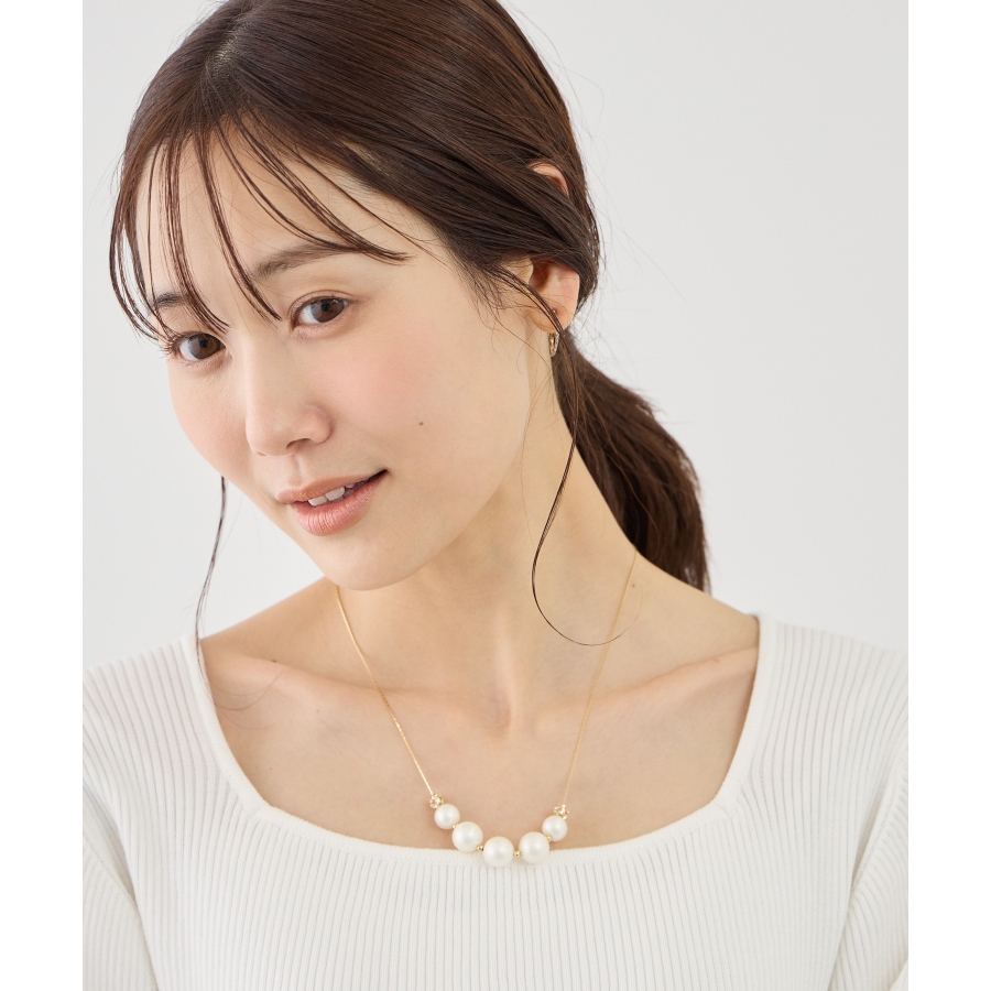 ・パールの丸みとロンデルの輝きが、首元にさりげない華やかさをプラス。
