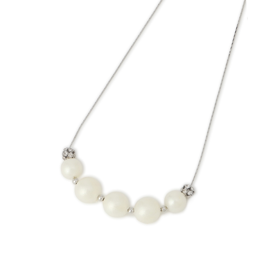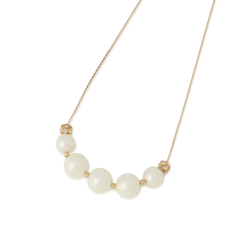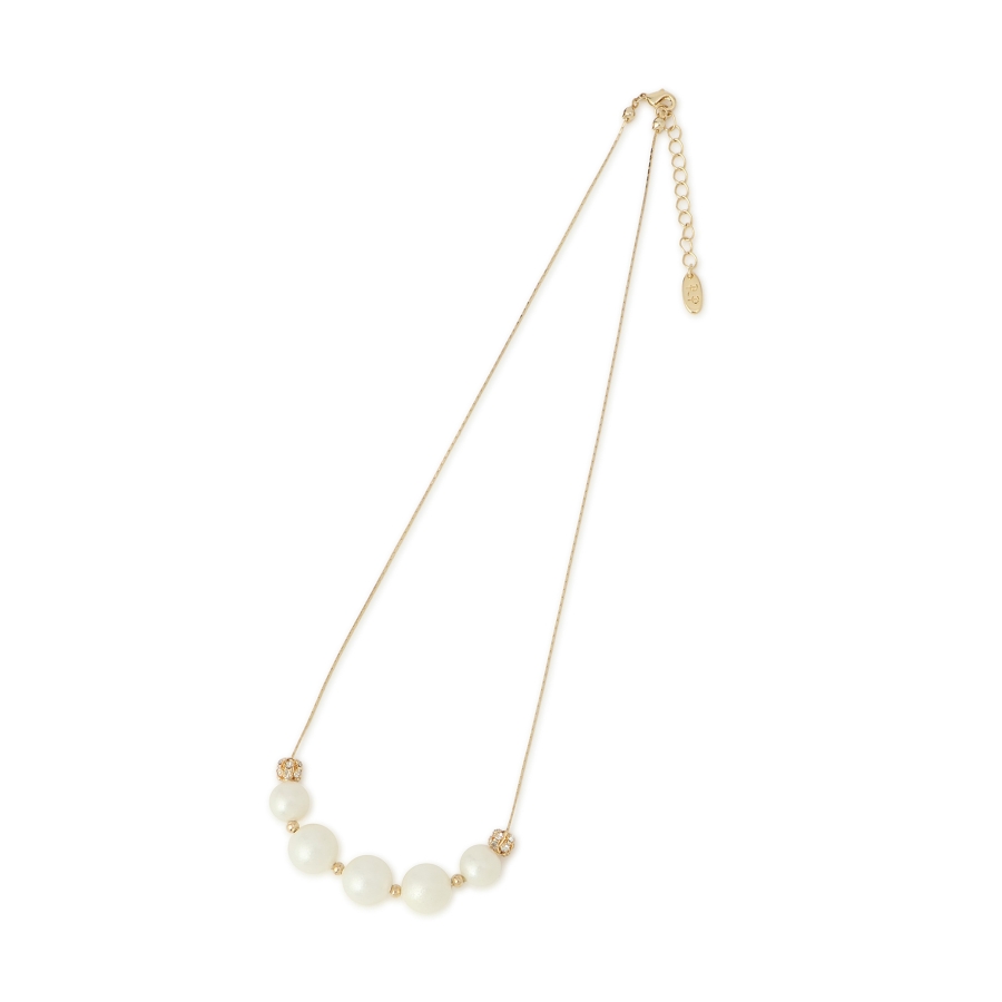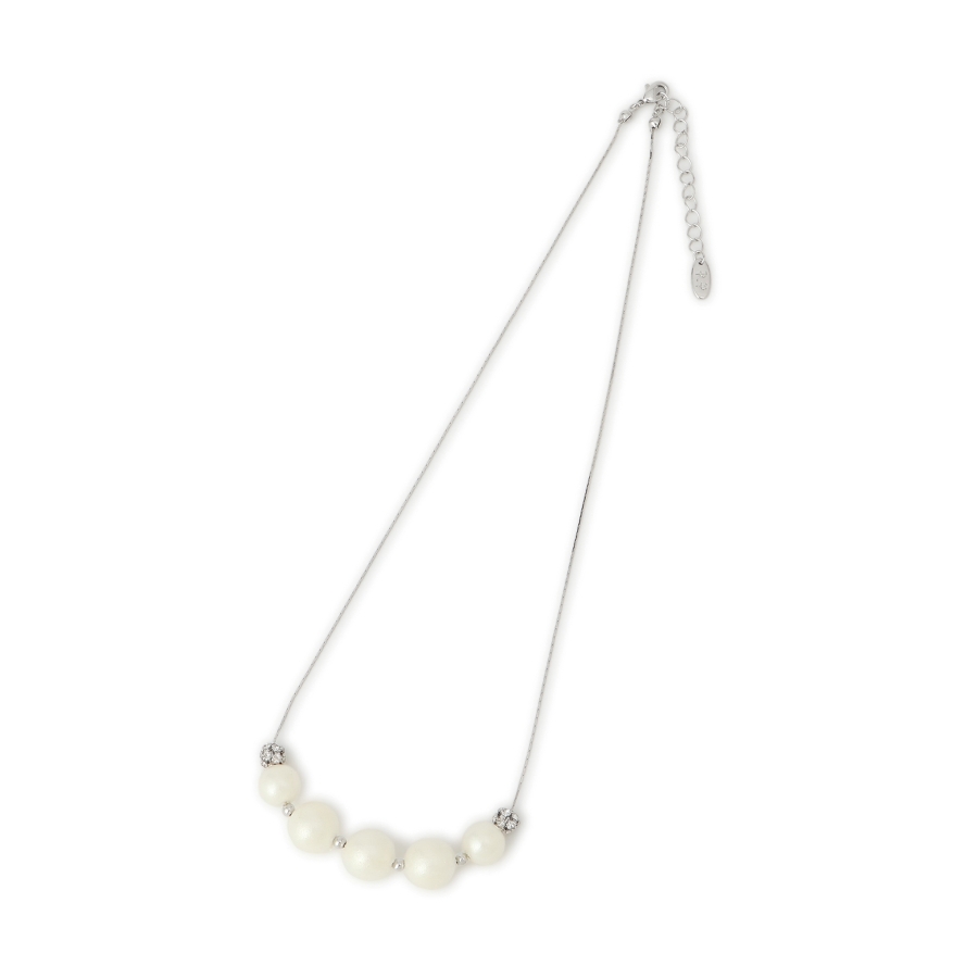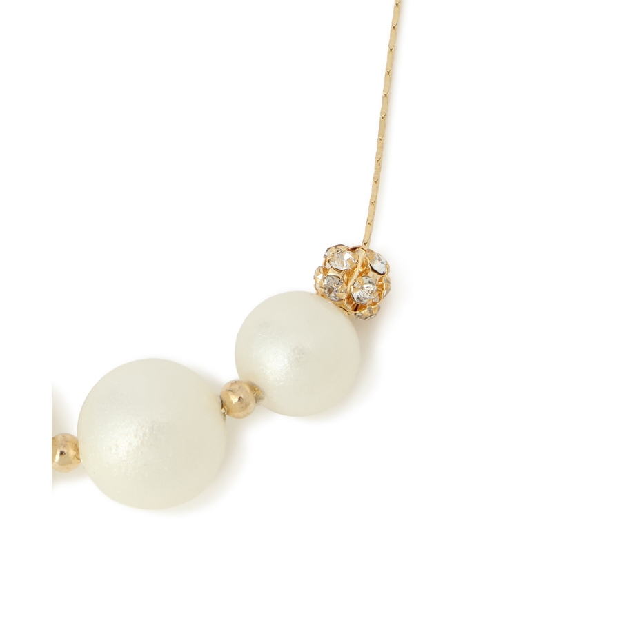 ・パールの丸みとロンデルの輝きが、首元にさりげない華やかさをプラス。
