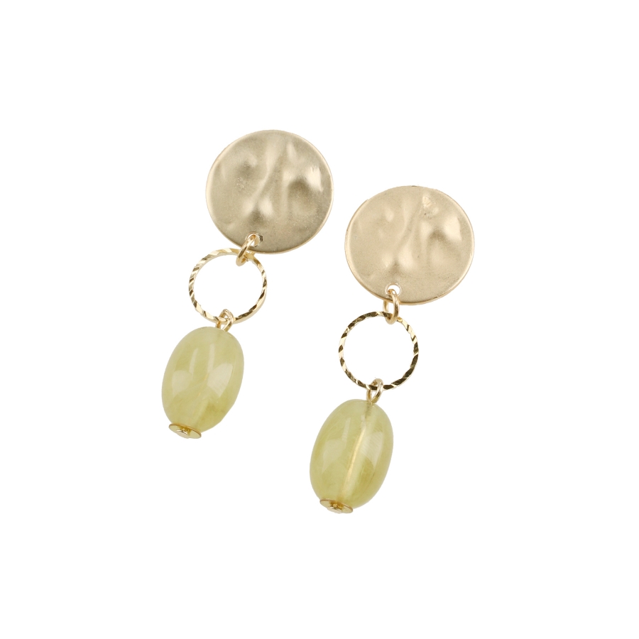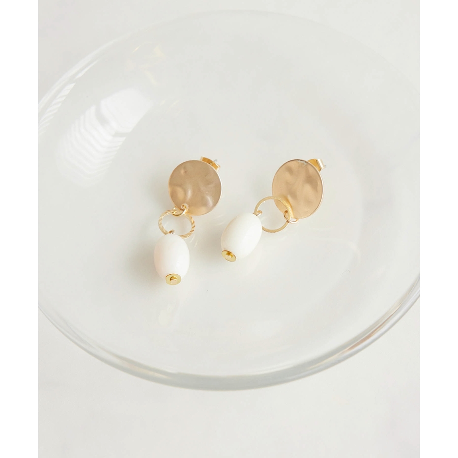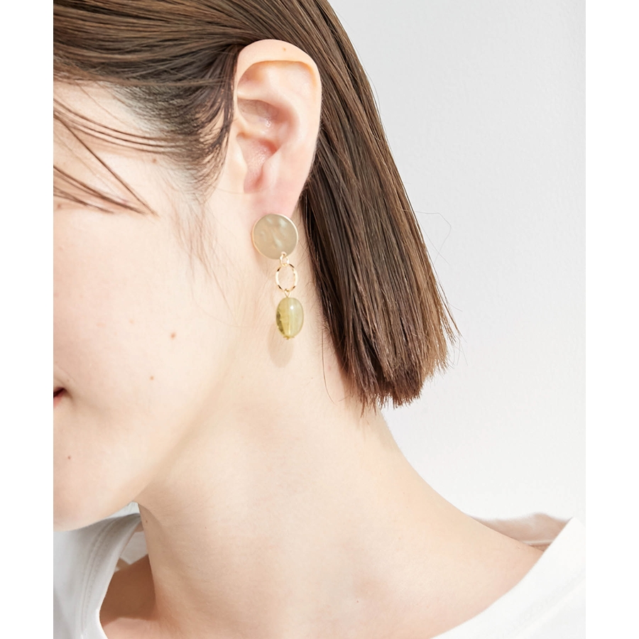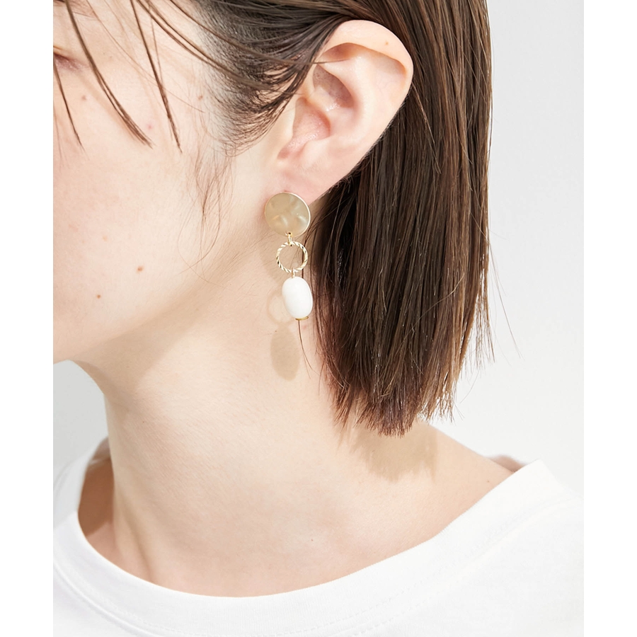 【デザイン・シルエット】 ・ニュアンスたっぷりなサークル型メタルと、メタルリング、カラーパーツをあしらった、揺れ感のあるボリュームピアス。 【カラー】 ・ライトベージュ、カーキのナチュラルカラー2色展開。 【スタイリングポイント】 ・プリント柄のブラウスやドレスなど、主張のあるウェアにも馴染みやすい一品。 ※撮影時の光、お使いのモニター環境によって色の見え方が違う場合がございます。