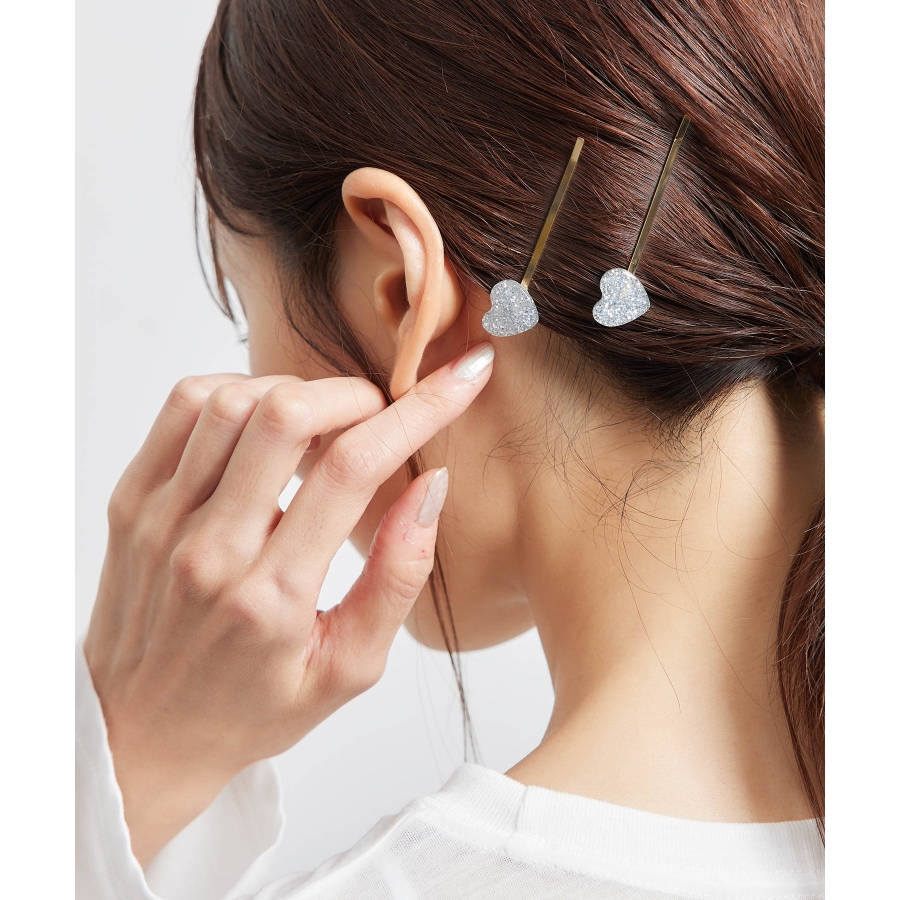ラメグリッターハートヘアピンセット