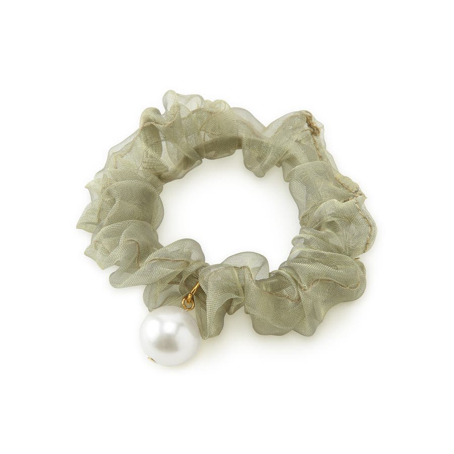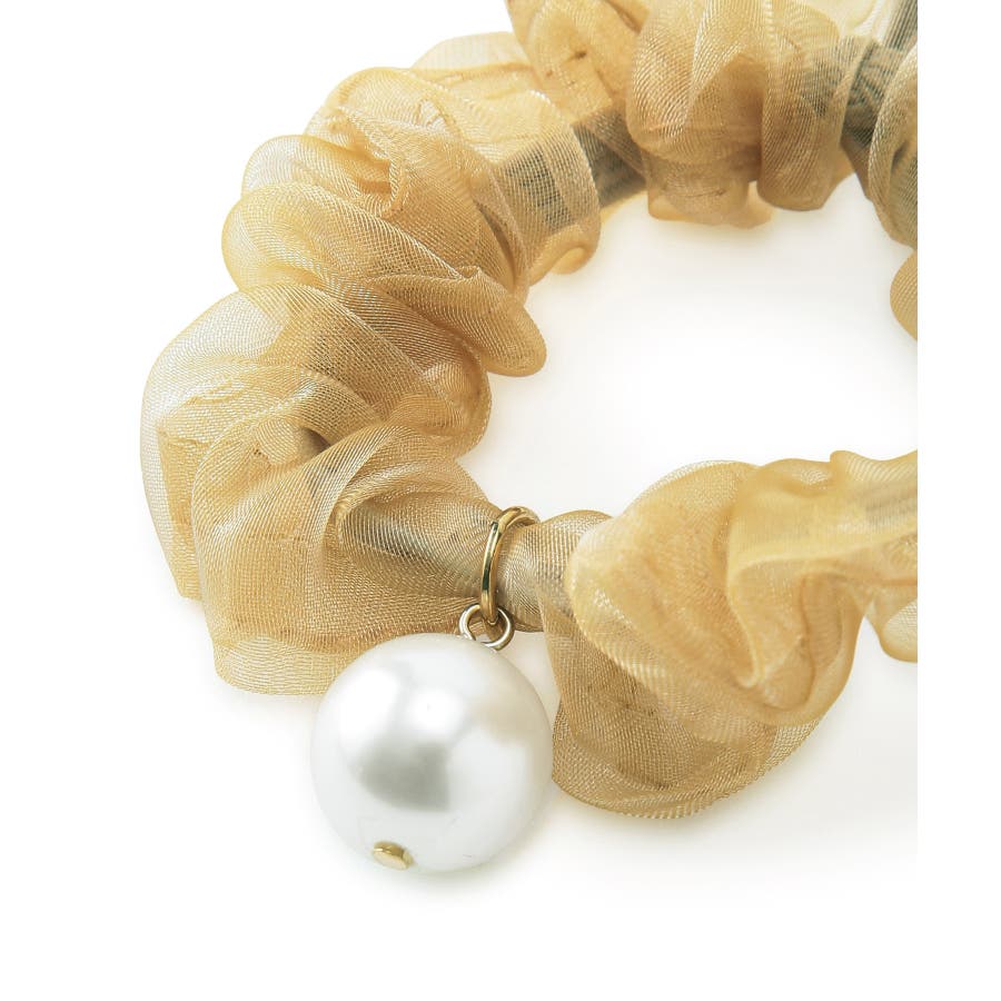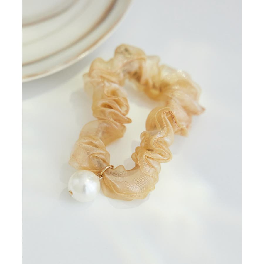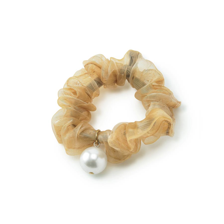 【デザイン・シルエット】 ・シアーなオーガンジー素材を使い、ギャザーを寄せて立体感をだしたシュシュ。 ・大粒のパールビーズがリッチなアクセント。 【カラー】 ・ブラック、カーキ、オレンジの3色展開。 【スタイリングポイント】 ・簡単なポニーテールも華やかで洗練されたムードにチェンジ。 ・ブラックは軽めのフォーマルなどにも対応可能。 ※撮影時の光、お使いのモニター環境によって色の見え方が違う場合がございます。