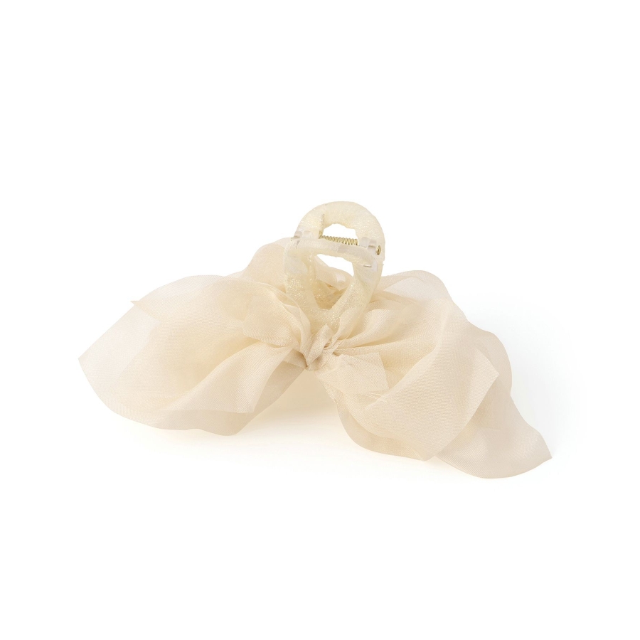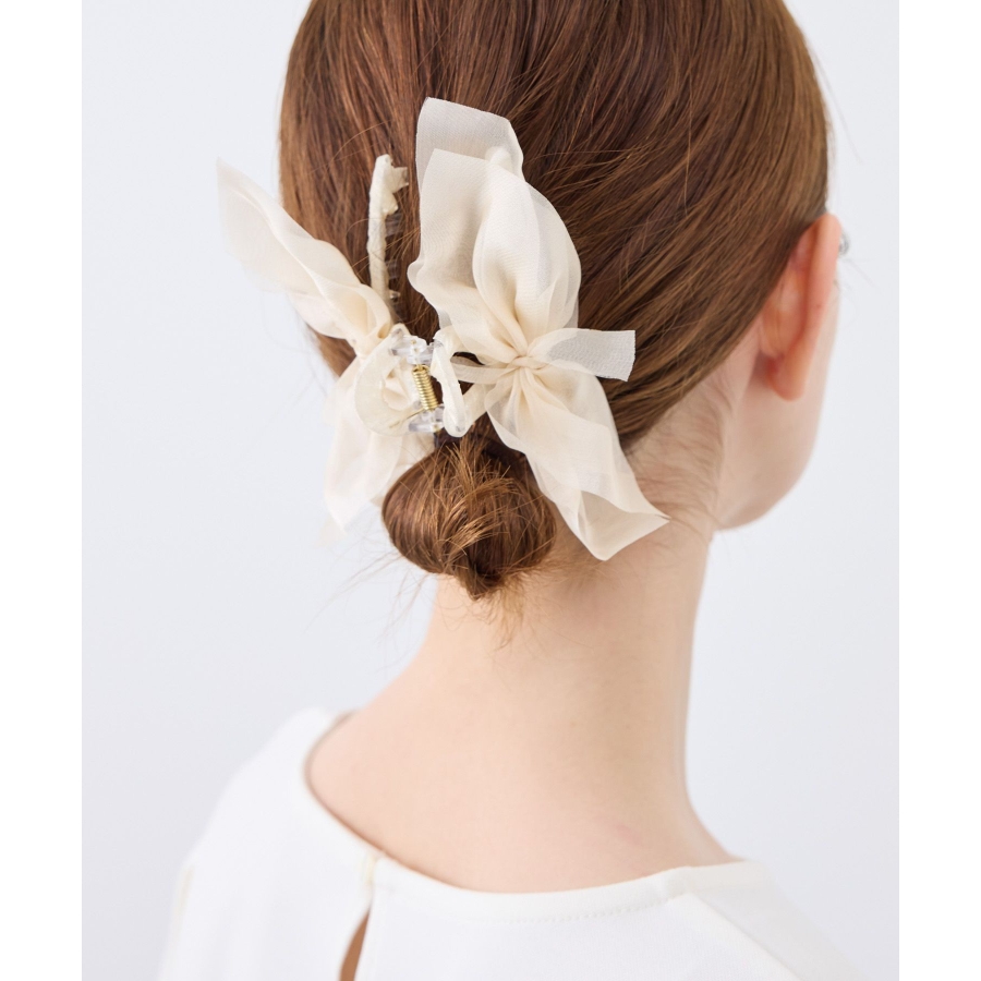 【デザイン・シルエット】 ・さっと髪の毛を挟めるヘアバンス。 ・シアーなシフォン素材で包んだ、エレガントなデザイン。 【カラー】 ・ブラック、ライトグレー、アイボリーのシックなカラーを3色展開。 【スタイリングポイント】 ・きれいめなスタイリングにも取り入れやすい。 ※撮影時の光、お使いのモニター環境によって色の見え方が違う場合がございます。