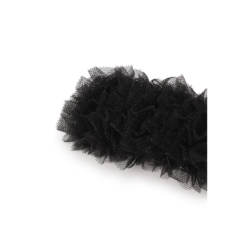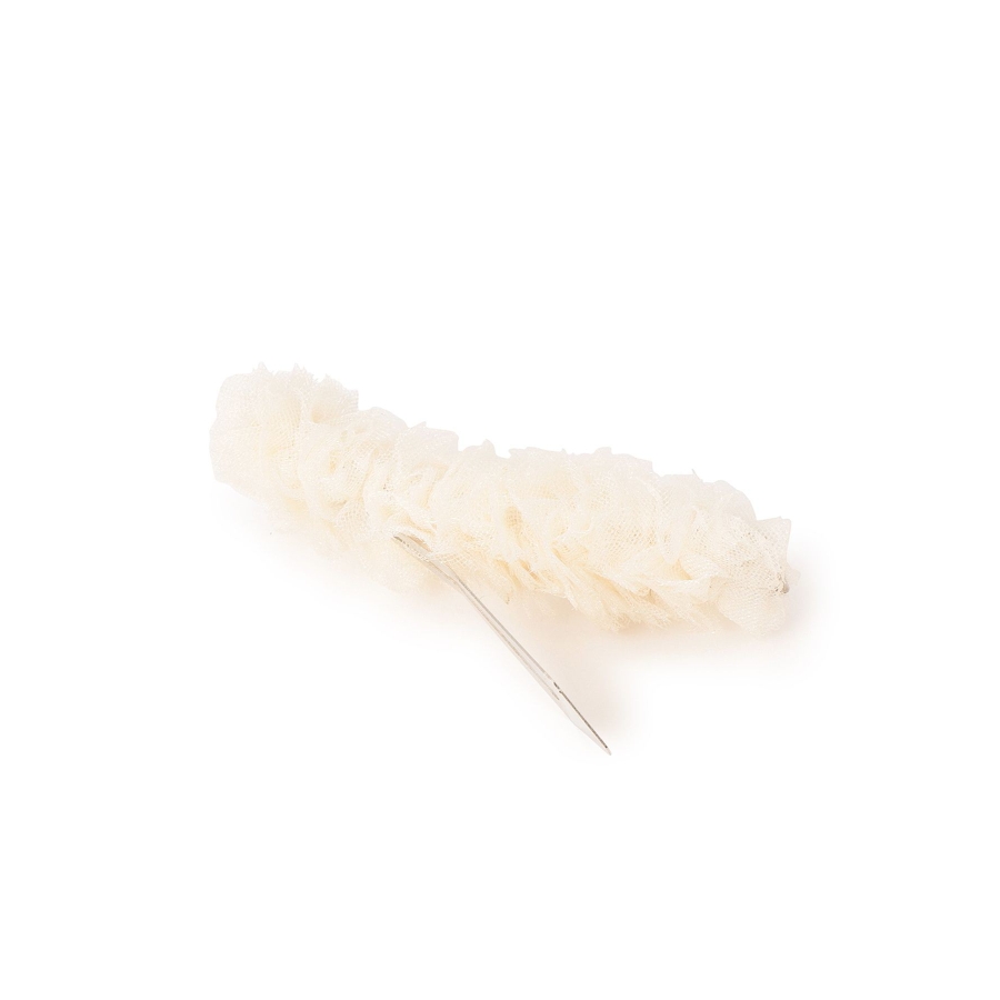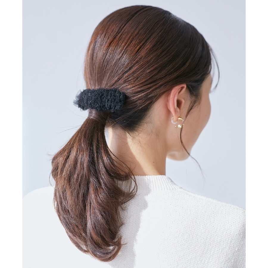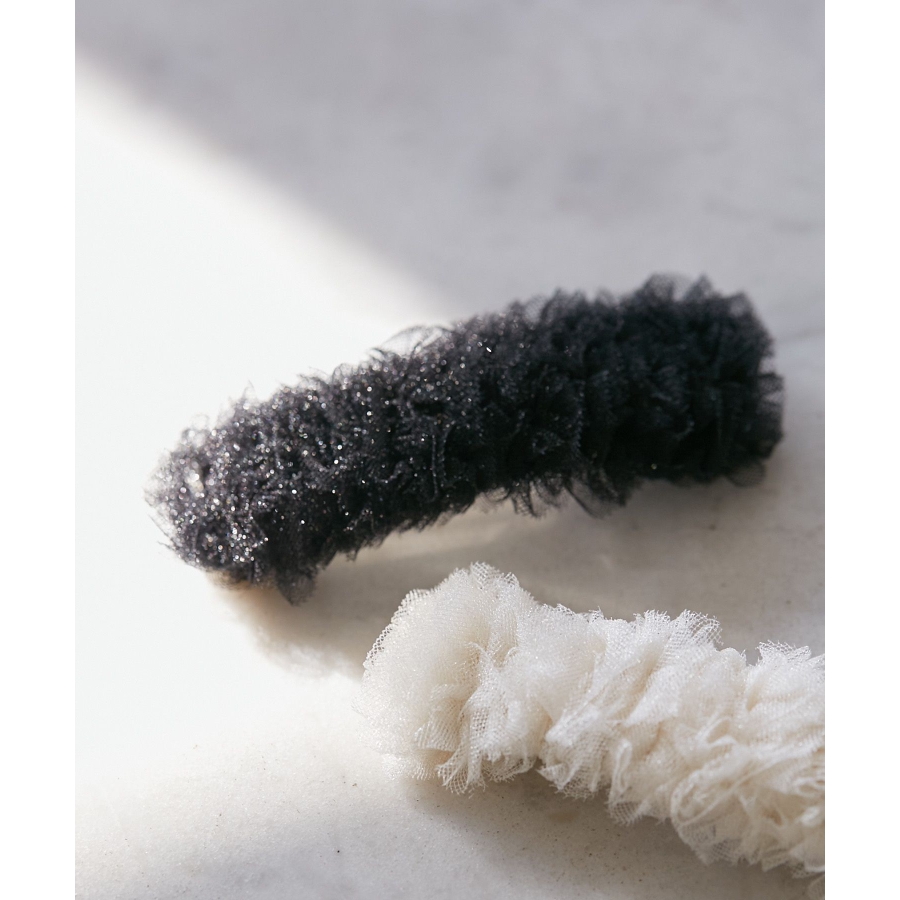 【デザイン・シルエット】 ・ほんのりきらめく、ラメ入りのチュール素材を用いたスリーピン。 ・スクエアフォルムが上品な印象。 ・ふんわりとしたボリュームあり。 【カラー】 ・ブラック、アイボリーの取り入れやすいモノトーン2色展開。 【スタイリングポイント】 ・シンプルなダウンヘアのサイド留めにぴったり。 ・色違いをそろえて一緒に取り入れるのも一押し。 ※撮影時の光、お使いのモニター環境によって色の見え方が違う場合がございます。