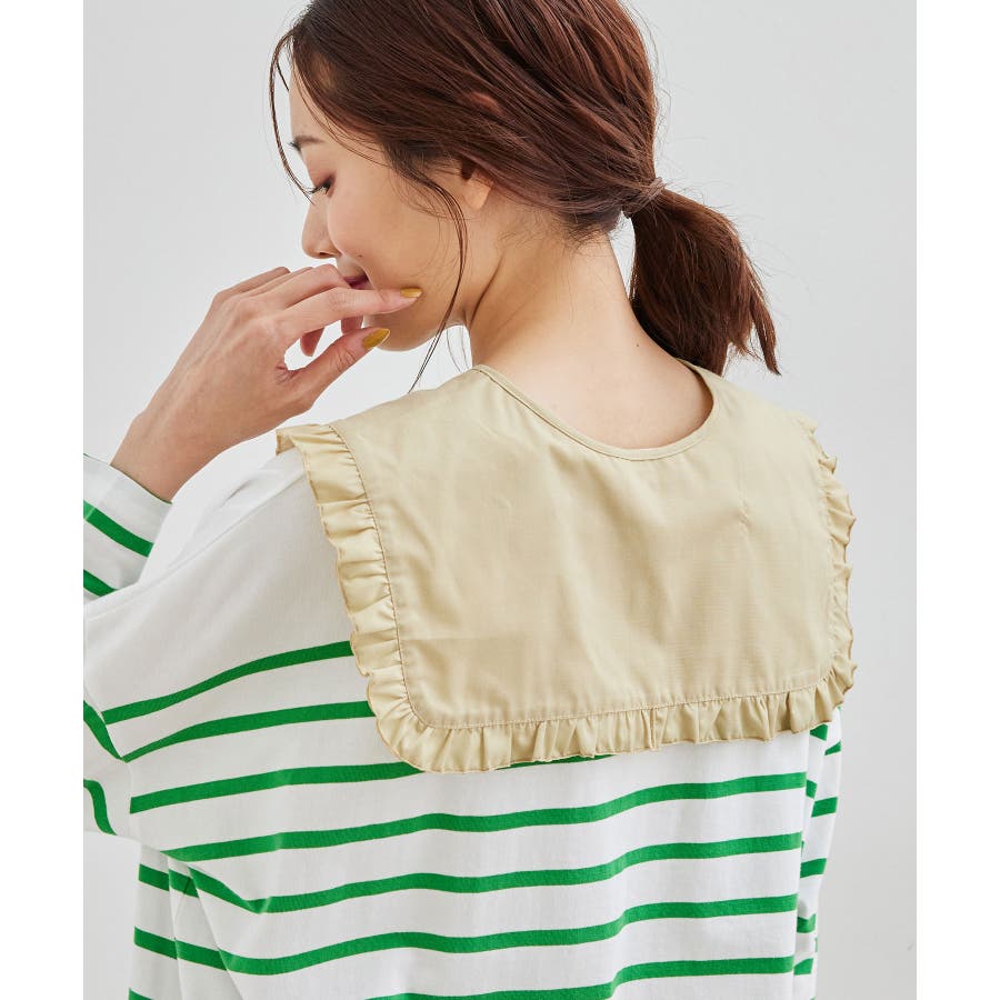 【デザイン・シルエット】 ・セーラーカラーを彷彿とする、フリルデザインの付け襟。 ・前後を逆にして付けられる便利な2WAYタイプ。 【カラー】 ・ホワイトとイエローの明るい2色をラインナップ。 【スタイリングポイント】 ・ボーダーカットソーに重ねて、爽やかに仕上げると上級者流スタイルに。 ※撮影時の光、お使いのモニター環境によって色の見え方が違う場合がございます。