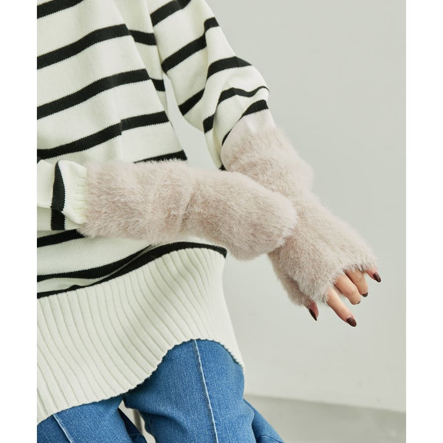 【デザイン・シルエット】 ・毛足のあるシャギーニットのフィンガーレスグローブ。 ・手首まわりも暖かいミドル丈。 【カラー】 ・アイボリー、ベージュ、ピンクのニュアンストーン3色展開。 【スタイリングポイント】 ・袖丈が短いアウターや、袖先にゆとりのあるアウターにベストマッチ。 ・カジュアルなスウェットなどに合わせるのもおしゃれ。 ※撮影時の光、お使いのモニター環境によって色の見え方が違う場合がございます。