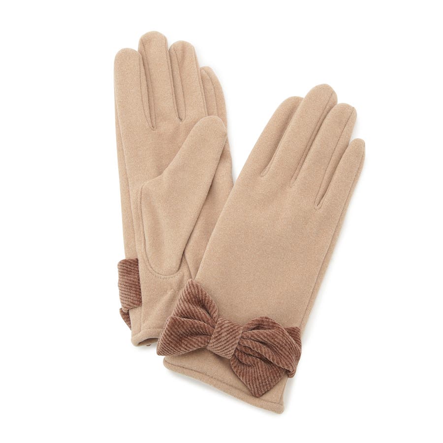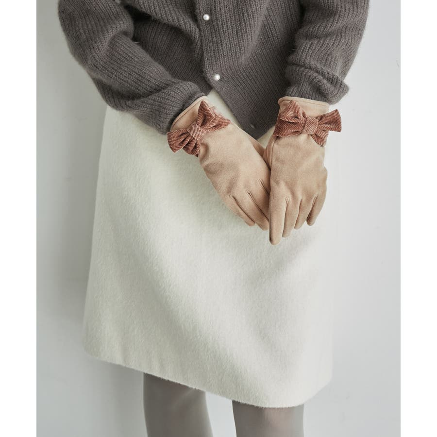 【素材感】 ・裏地はリサイクル素材を使用した、サステナブルなアイテム。 【デザイン・シルエット】 ・シンプルな無地のグローブ。 ・コール天生地を用いた、ボリューミーなリボンが華やかなアクセント。 【カラー】 ・チャコールグレー、ベージュの落ち着いた2色をラインナップ。 【スタイリングポイント】 ・通勤シーンや、フォーマルスタイルにも合わせやすい上品さ。 ※撮影時の光、お使いのモニター環境によって色の見え方が違う場合がございます。