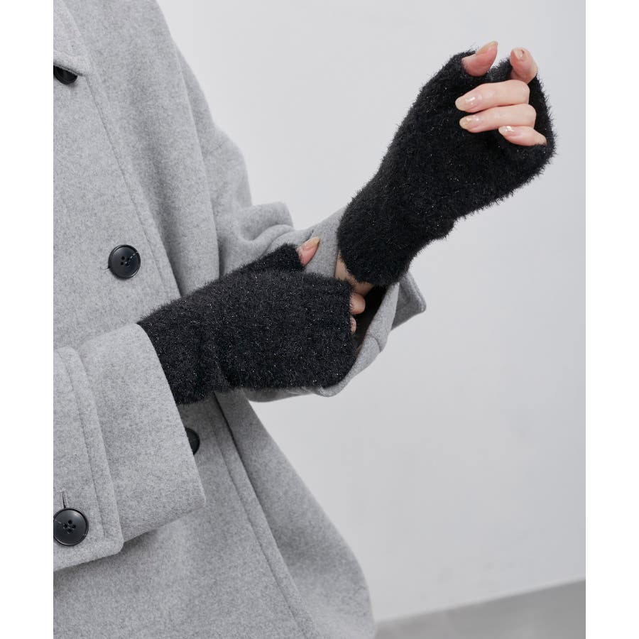 【素材感】 ・ラメ糸を混紡したきらめくニットのフィンガーレスグローブ。 【デザイン・シルエット】 ・軽くてつけ外しがしやすく、持ち運びにも便利。 【カラー】 ・ブラック、シルバーのクールな2色展開。 【スタイリングポイント】 ・クールな佇まいで、モードなスタイリングにもマッチ。 ・シンプルなのでオンオフ兼用が可能。 ※撮影時の光、お使いのモニター環境によって色の見え方が違う場合がございます。