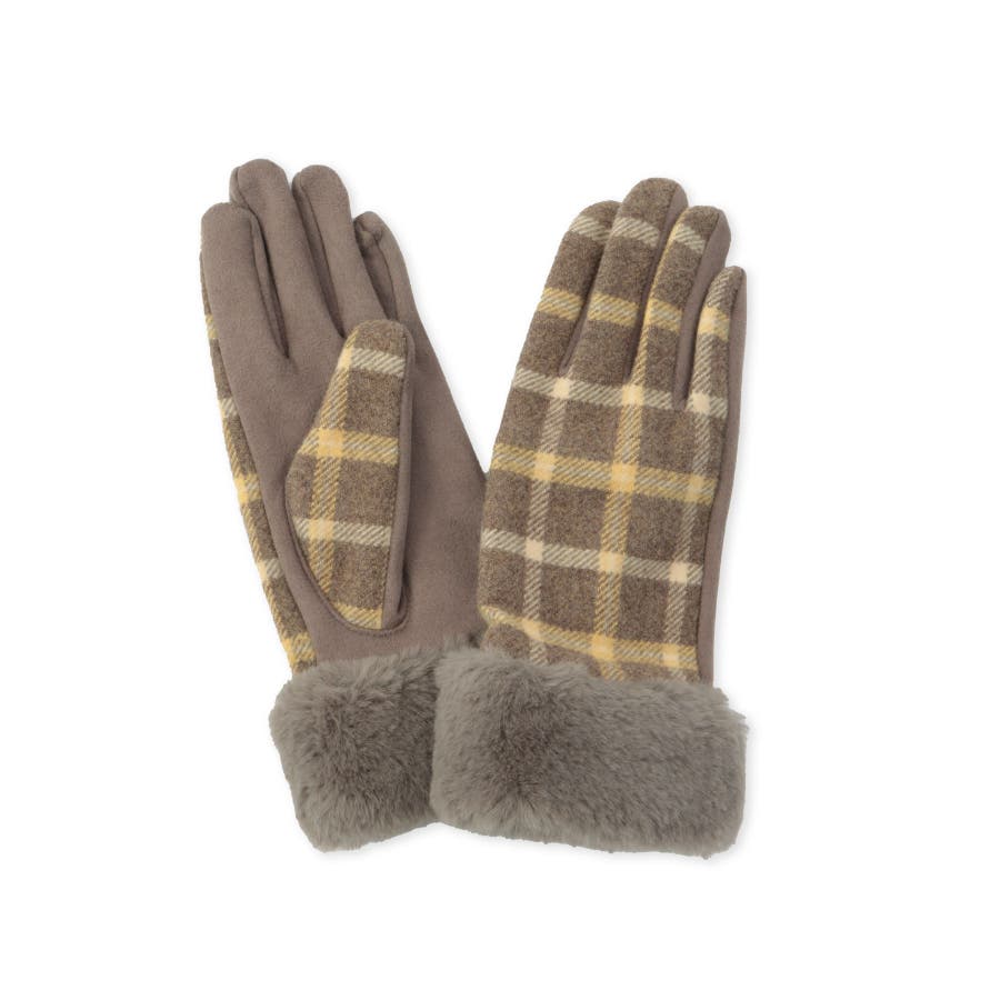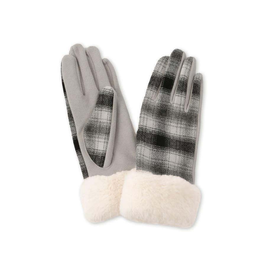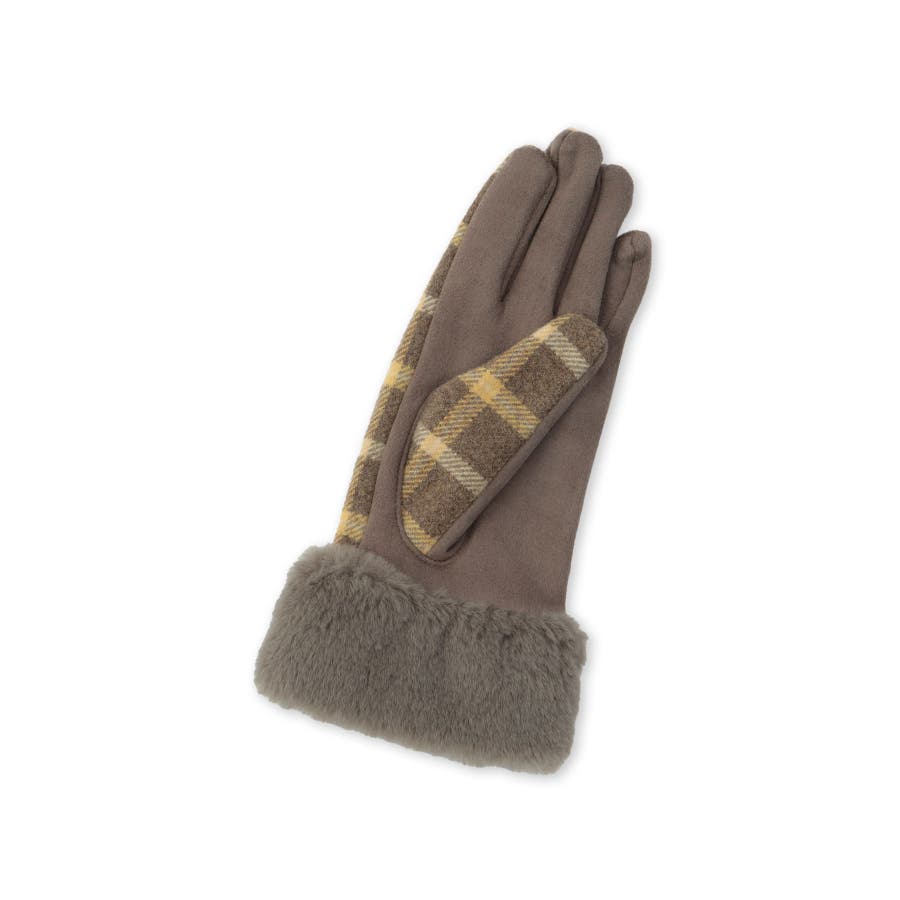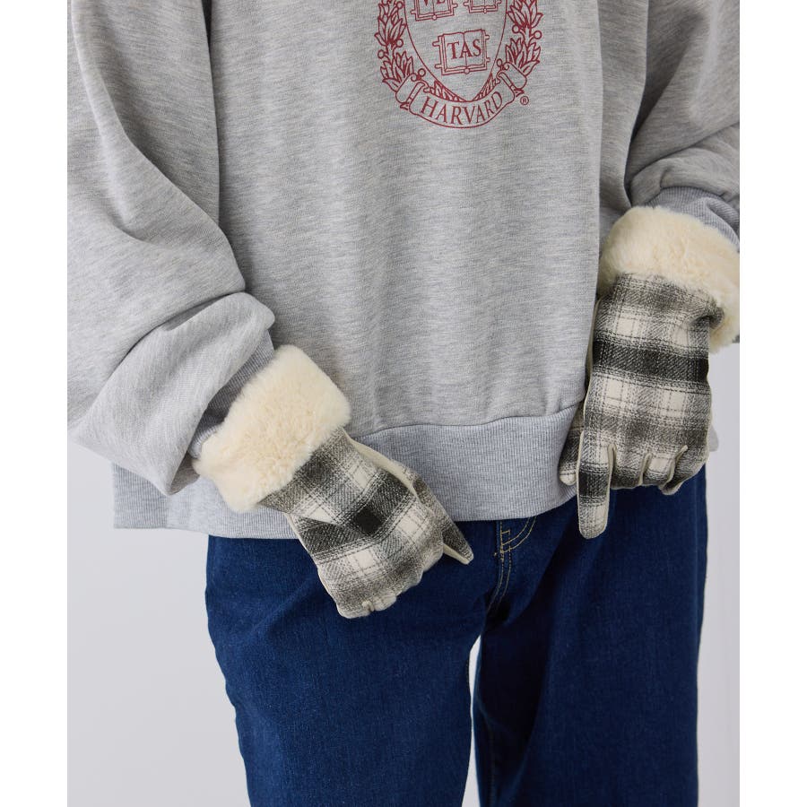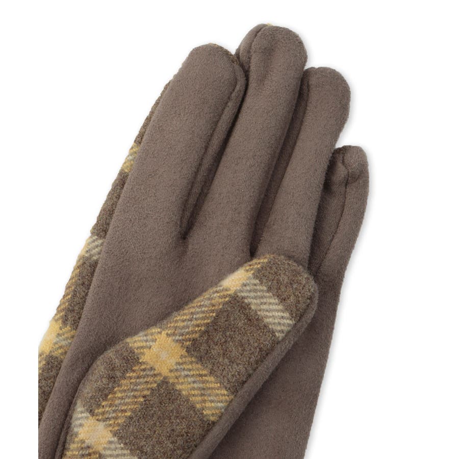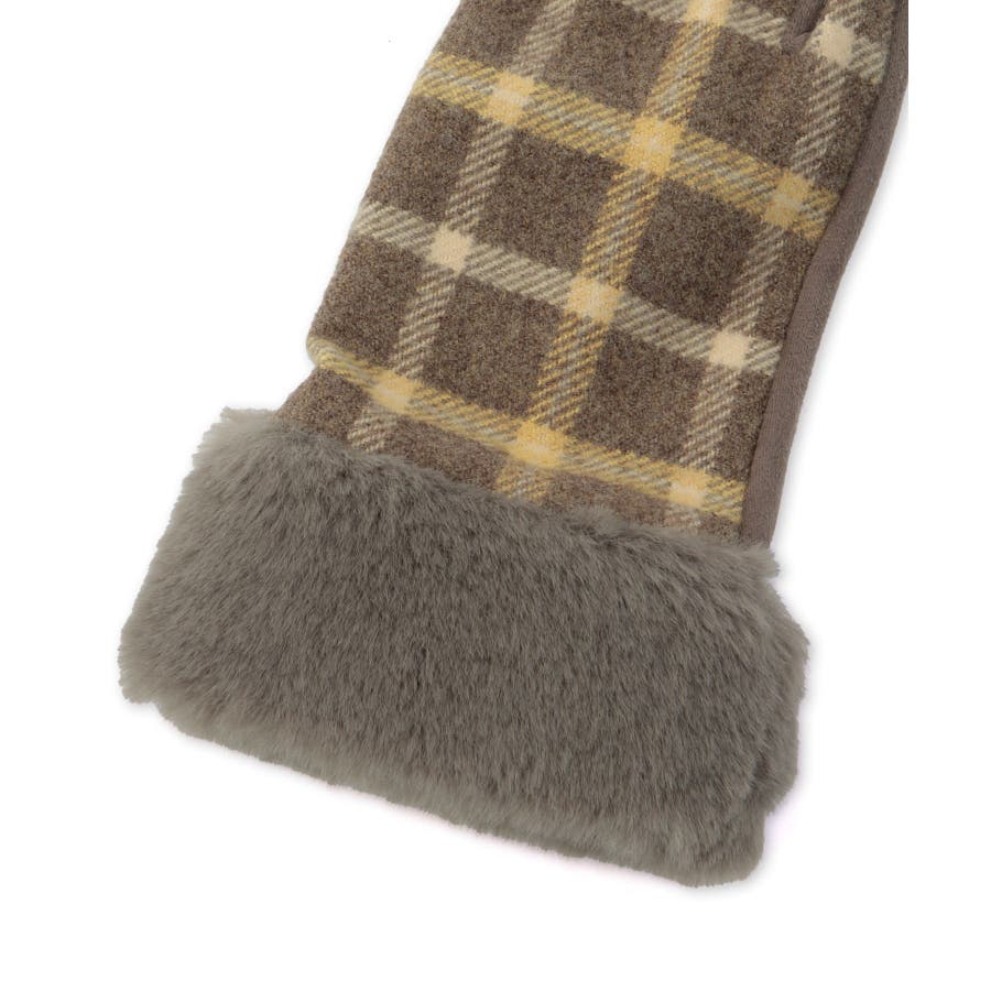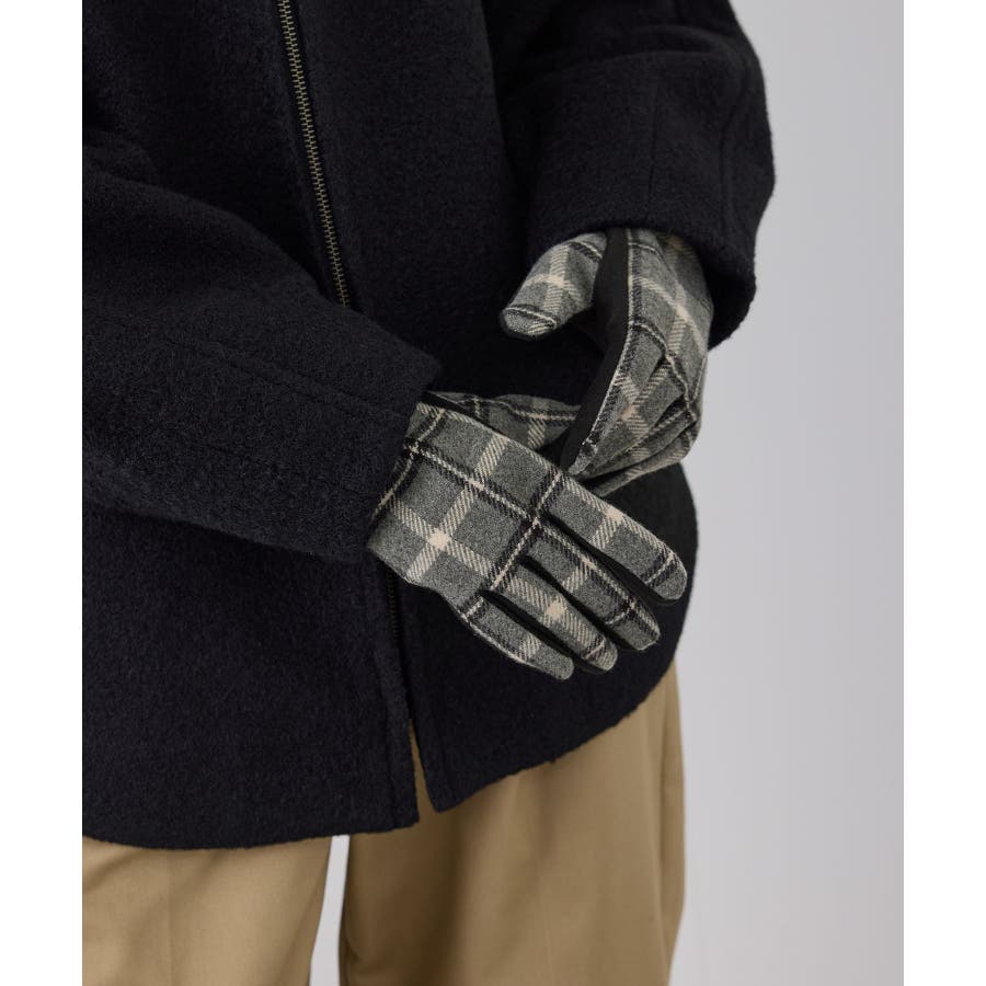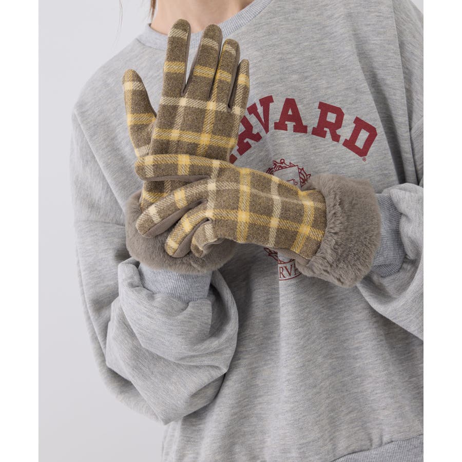 【デザイン・シルエット】 ・チェック柄と無地を組み合わせた、デザイン性のあるグローブ。 ・手首まわりはフェイクファーを飾って華やかにフィニッシュ。 ・チェック柄はカラーごとに色とパターンが異なるアソート展開。 【カラー】 ・カラーによって組成の混率が異なります。 ブラック(01)ベージュ系(28):(甲部)ポリエステル 57% レーヨン 28% アクリル 15% (掌部)ポリエステル 88% ポリウレタン 12% (ファー部分)ポリエステル 100% キナリ系(17):(甲部)ポリエステル 92% レーヨン 4% アクリル 4% (掌部)ポリエステル 88% ポリウレタン 12% (ファー部分)ポリエステル 100% 【スタイリングポイント】 ・シンプルになりやすい冬のコートスタイルのアクセントにぴったり。 ・カジュアルなアウトドアコーデにプラスしてもグッド。 ※撮影時の光、お使いのモニター環境によって色の見え方が違う場合がございます。