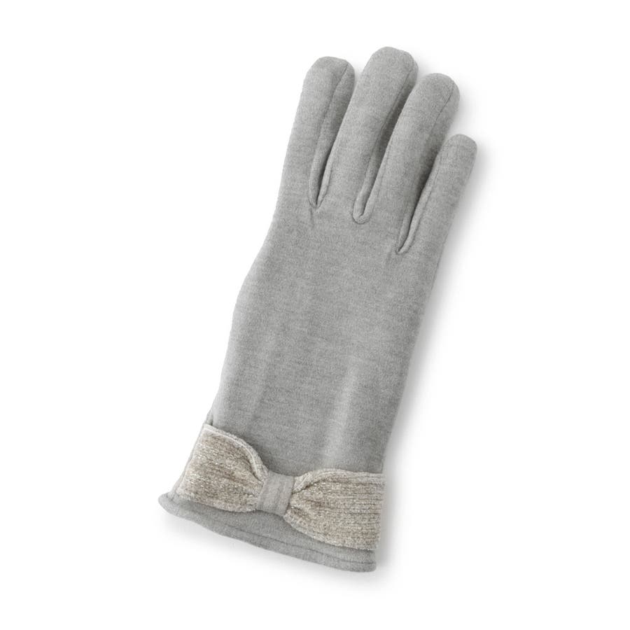 【素材感】 ・暖かな裏ボアのグローブ。 【デザイン・シルエット】 ・フロント手首部分の大きなリボンが愛らしいアクセントに。 【カラー】 ・グレーの1色展開。 【スタイリングポイント】 ・ガーリッシュなウェアにマッチ。 ・フォーマルスタイルにも対応可能。 ※撮影時の光、お使いのモニター環境によって色の見え方が違う場合がございます。