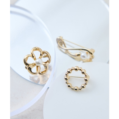 【デザイン・シルエット】 ・フラワーモチーフなど、デザインが異なる3つのブローチをセットにしたお得なアイテム。 ・パールビーズを飾ったエレガントなデザイン。 【カラー】 ・ゴールド、シルバーの2色展開。 【スタイリングポイント】 ・ジャケットの胸もと、ストール、フェルトハットやバッグ等、さまざまなアイテムの飾りつけにぴったり。 ※撮影時の光、お使いのモニター環境によって色の見え方が違う場合がございます。