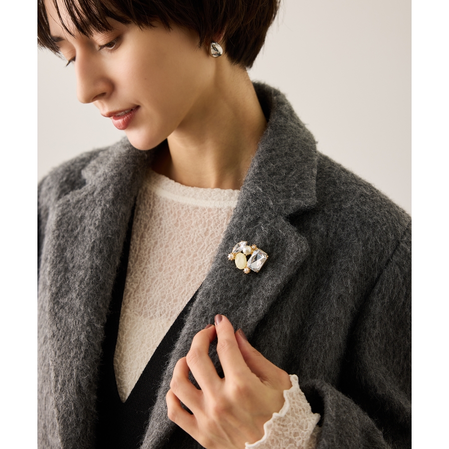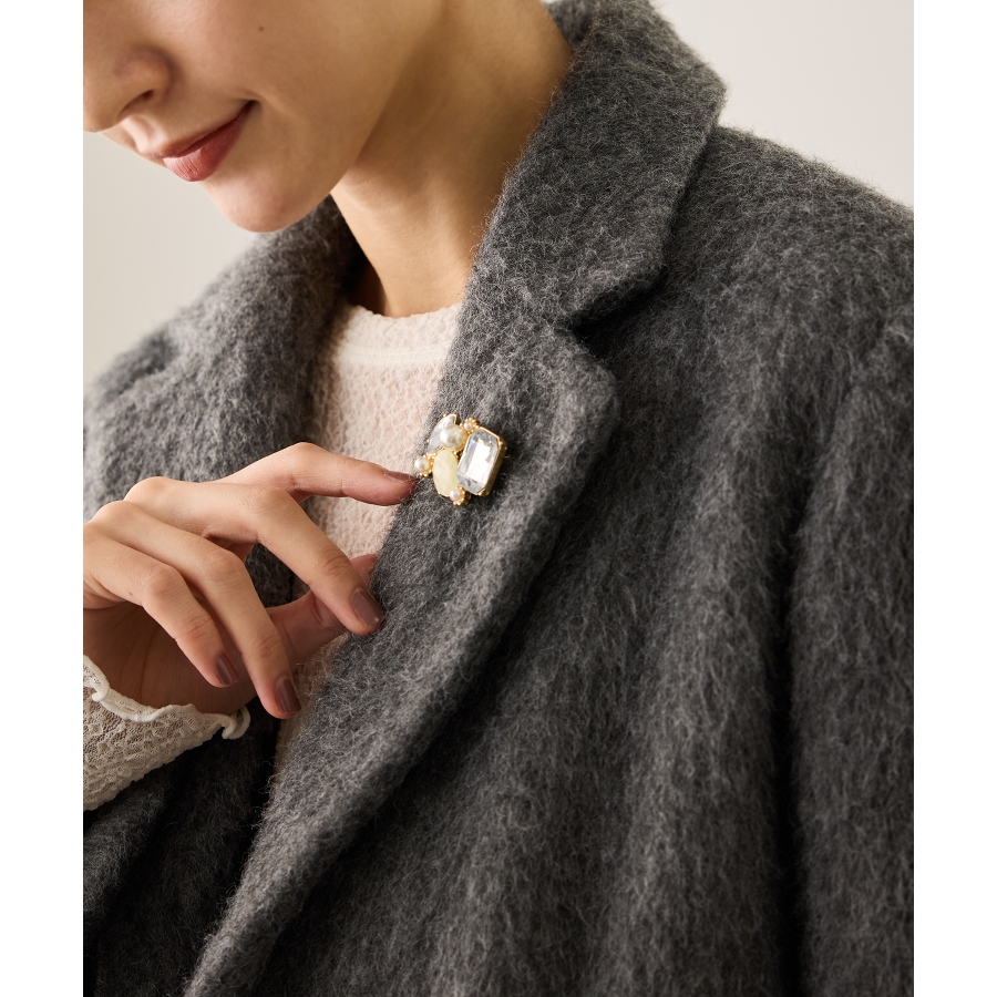 ・無地のウールコートやストール、マフラーに付けて、ぐっと洗練された印象に。