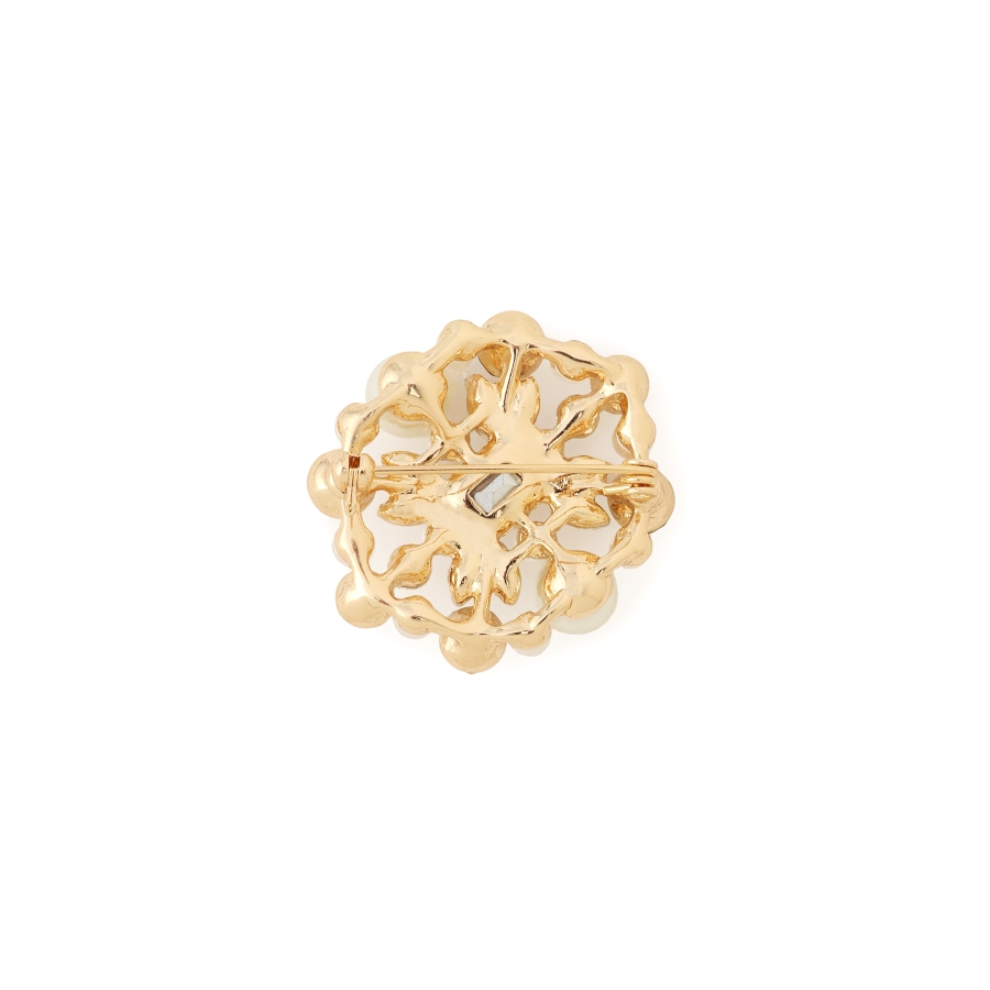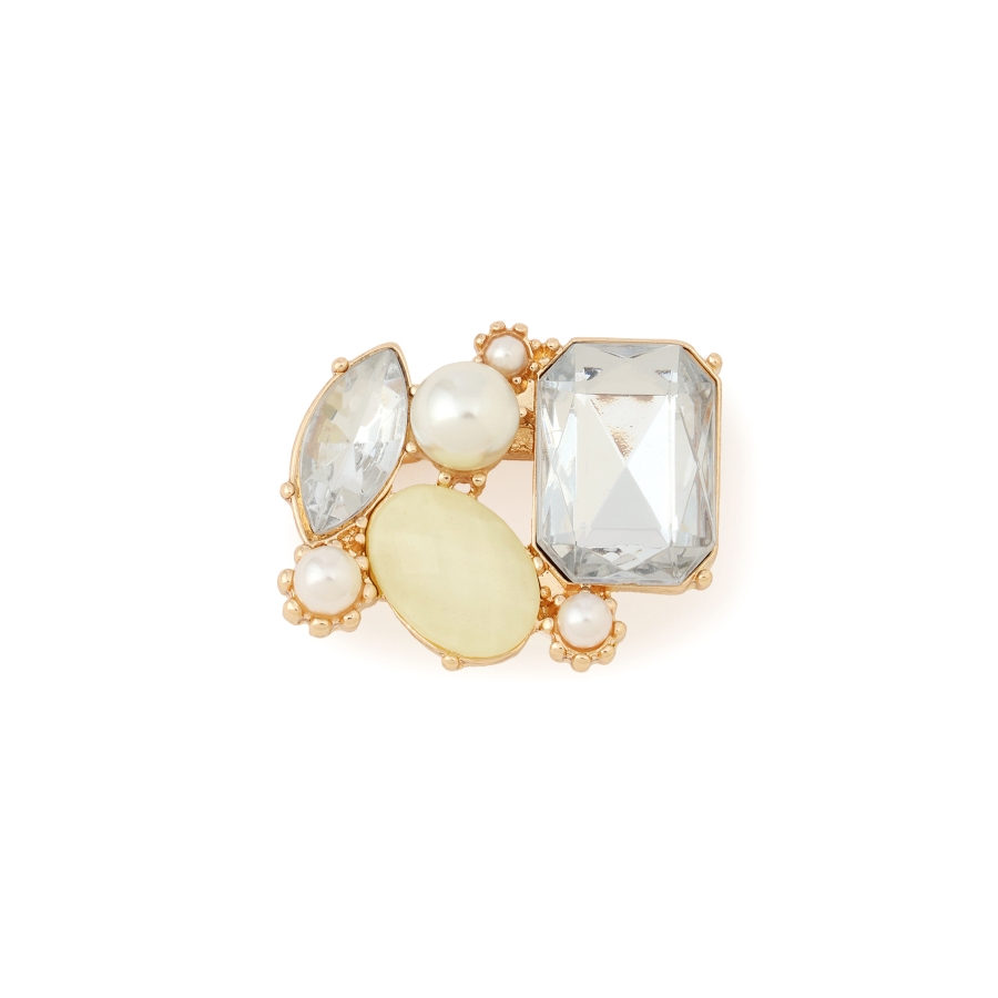 ・ゴールドの台座が、ビジューとパールの輝きを一層引き立て、高級感をプラスしてくれる。