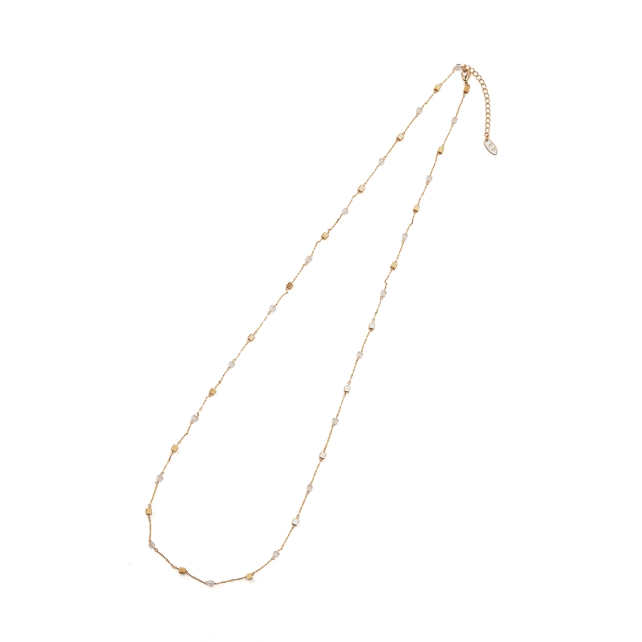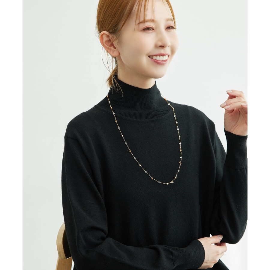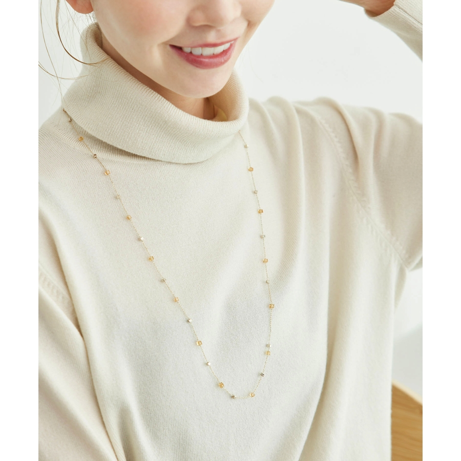 【デザイン・シルエット】 ・繊細なチェーンに、等間隔でスクエアビーズを飾ったロングネックレス。 ・長さの調節ができるアジャスタブル仕様。 【カラー】 ・クリア、ベージュのナチュラルカラー2色展開。 【スタイリングポイント】 ・プリントワンピースなど、主張のあるウェアにも合わせやすい。 ・きれいめもカジュアル使いもOK。 ※撮影時の光、お使いのモニター環境によって色の見え方が違う場合がございます。