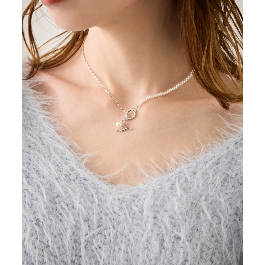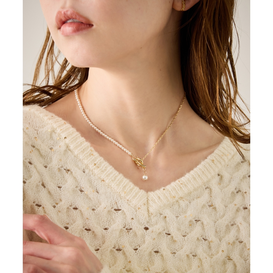 チェーン×パールショートスライドネックレス