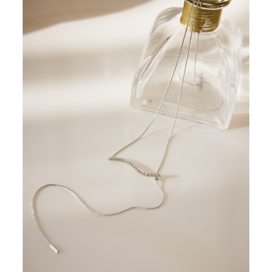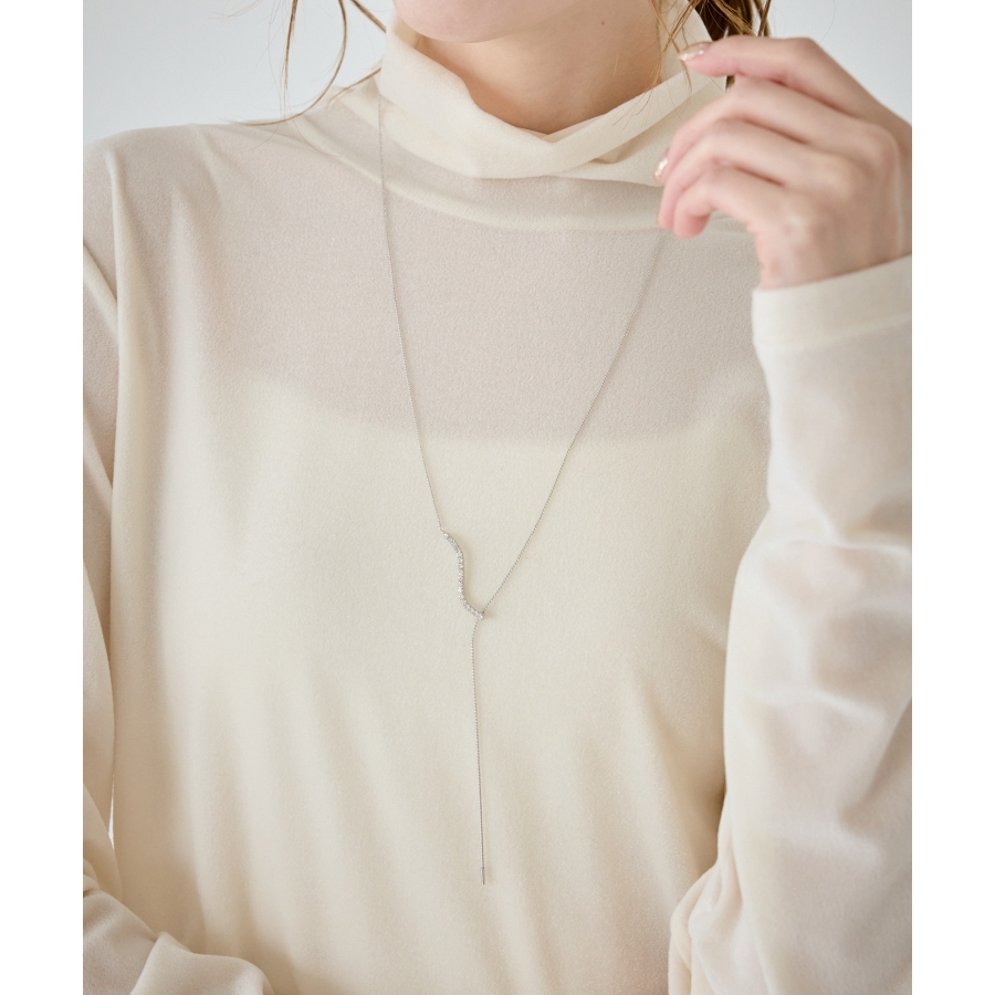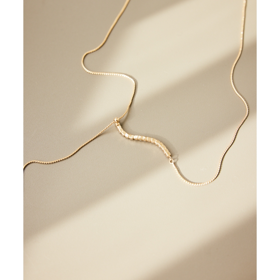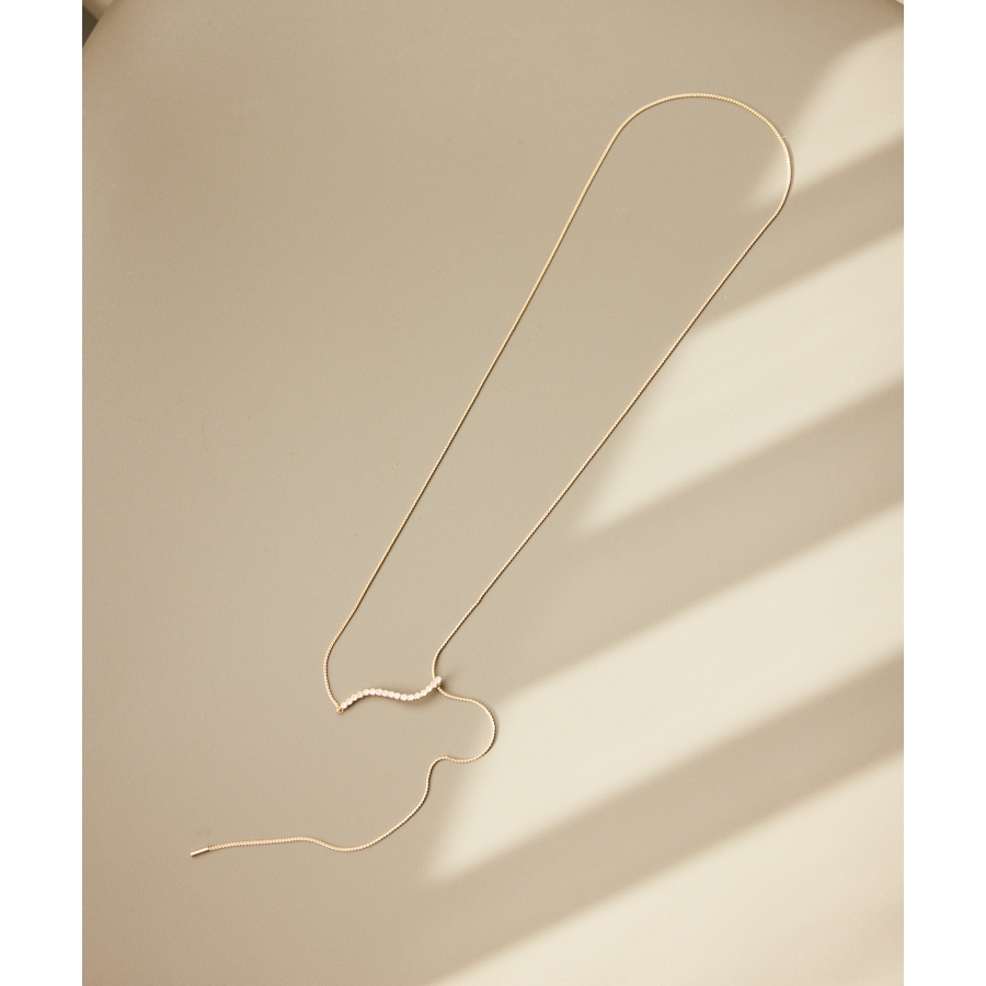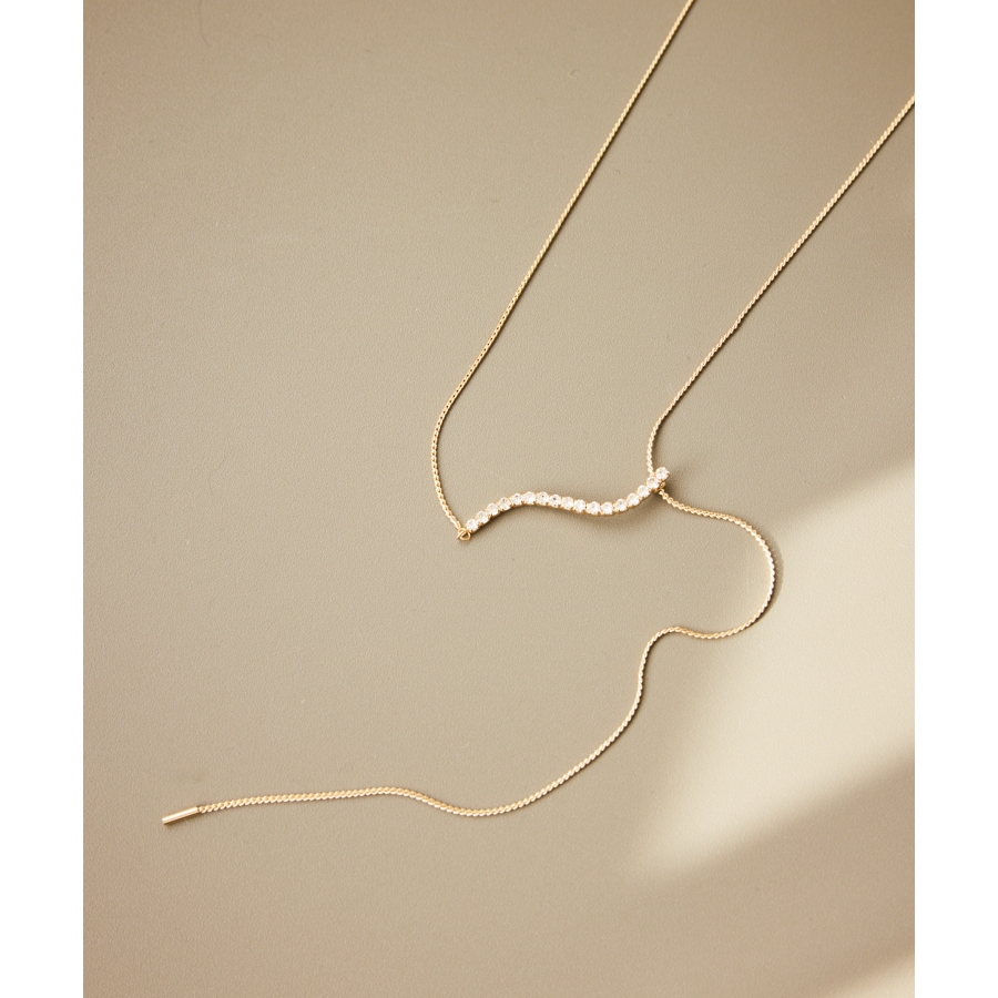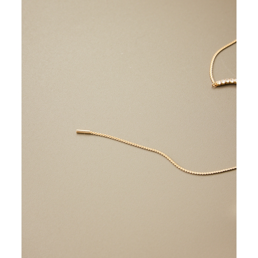 ・デコルテに優しく沿うようにデザインされた、緩やかなカーブを描くバーが印象的なネックレス。