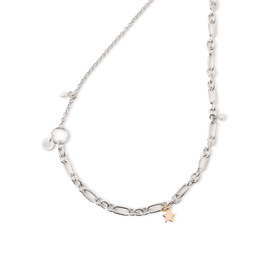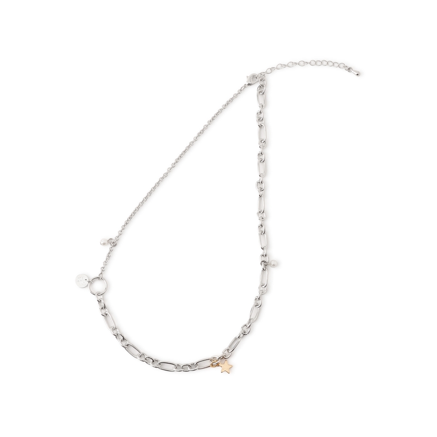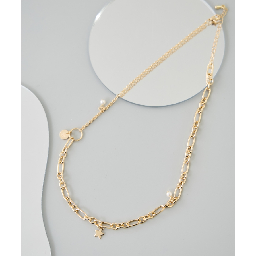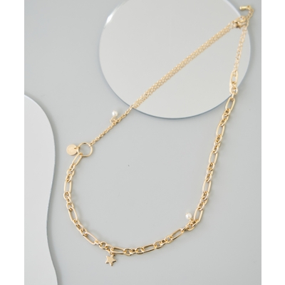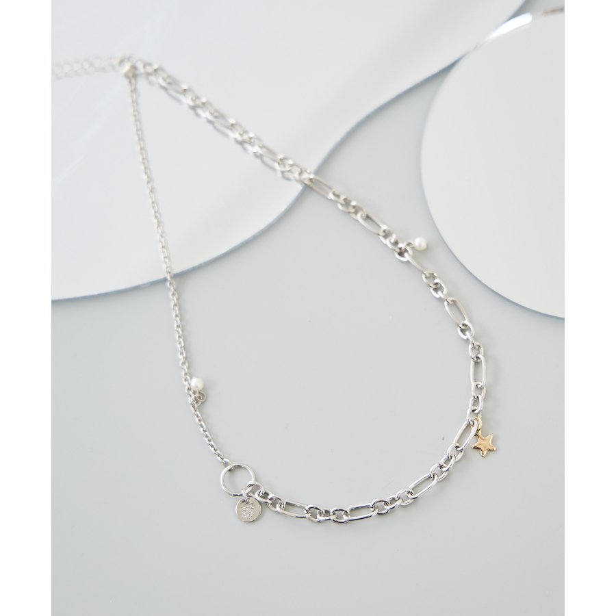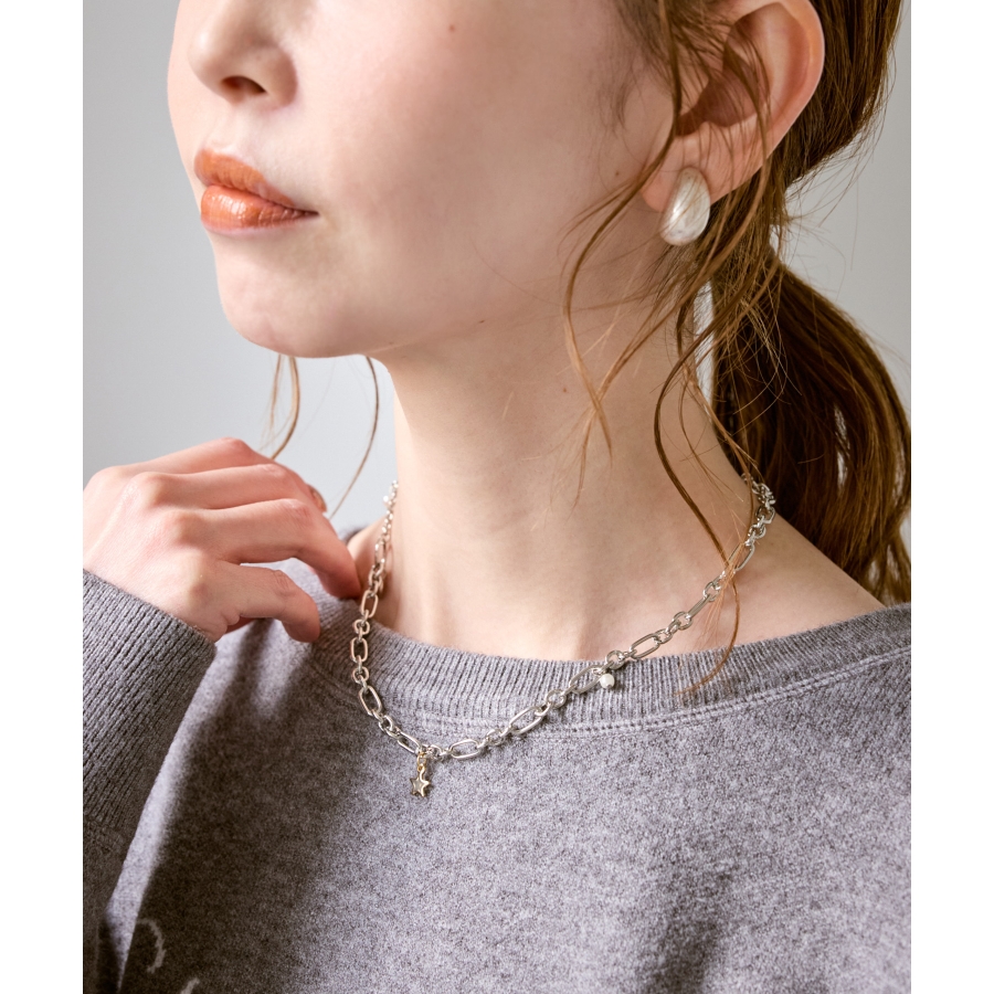 ・デザインの異なる2種類のチェーンを組み合わせた、アシンメトリー(左右非対称)なデザインのネックレス。