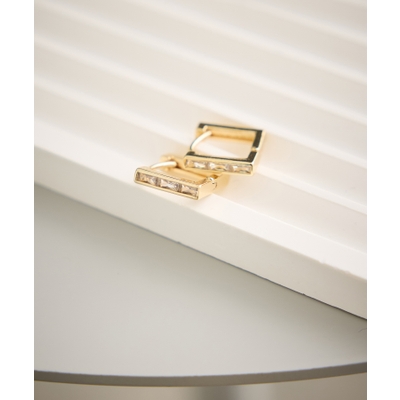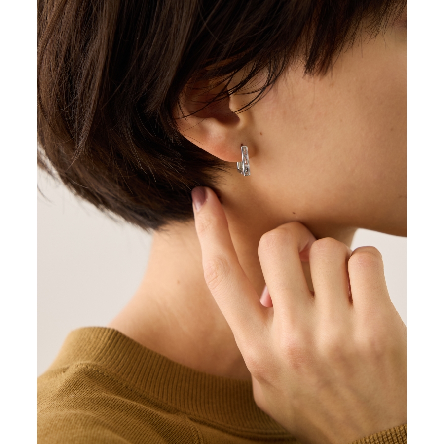 ・フープの正面には、クリアストーンを贅沢に配置。小ぶりながらも顔周りを明るく華やかに彩る。