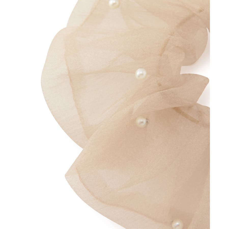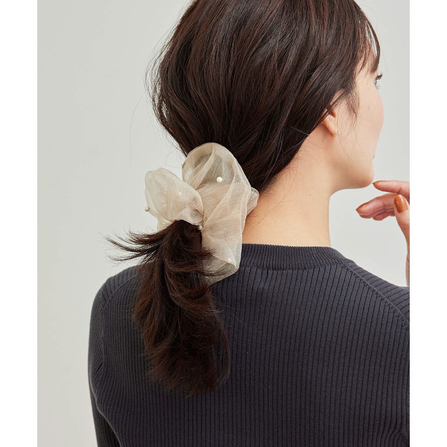 【デザイン・シルエット】 ・パールビーズを散りばめた、華やかさ溢れるオーガーンジーシュシュ。 【カラー】 ・ブラック、ベージュ、ブルーの3色展開。 【スタイリングポイント】 ・フォーマルなスタイリングのヘアアレンジにもマッチ。 ※撮影時の光、お使いのモニター環境によって色の見え方が違う場合がございます。